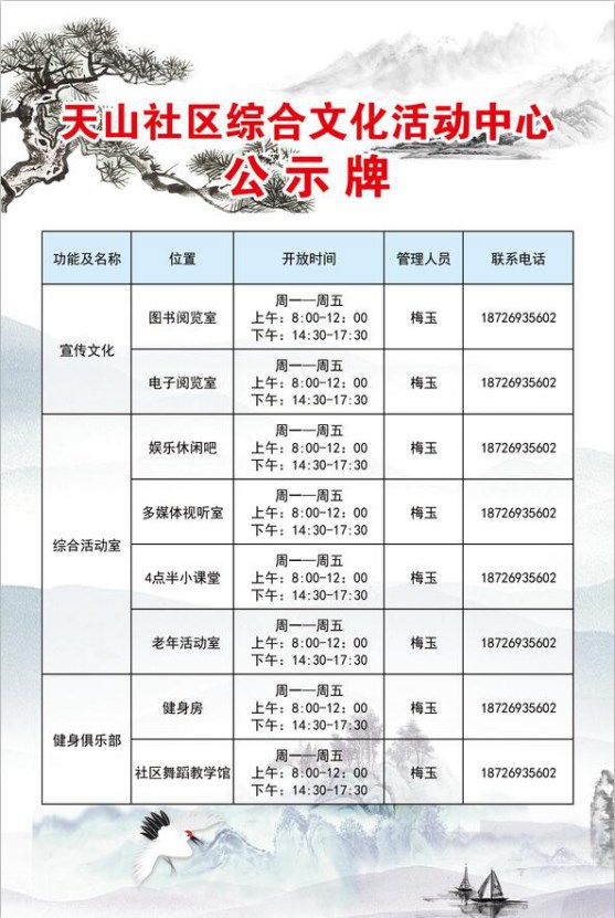 天山社区综合文化活动中心公示牌