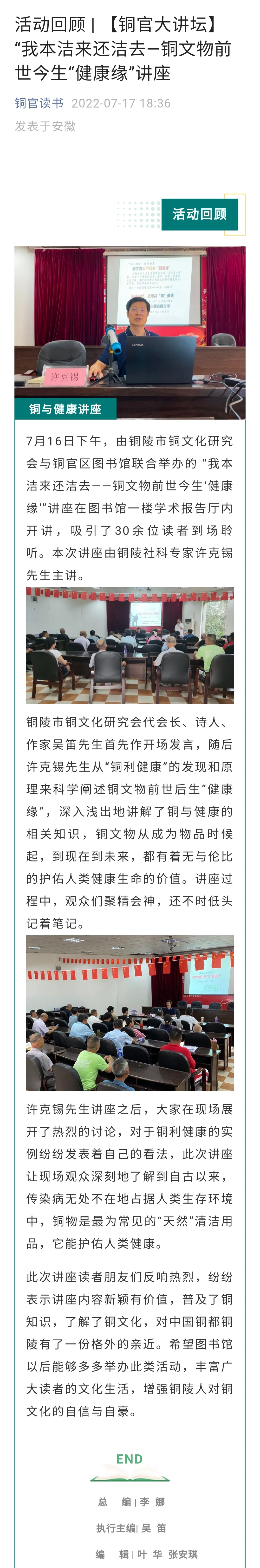 "我本洁来还洁去——铜陵文物前世今生‘健康缘’”讲座-铜官区人民政府