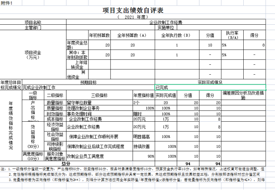 附件1:项目支出绩效自评表
