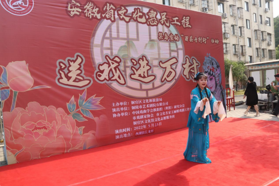 2022年5月23日,铜官区文旅局联合铜陵市艺术剧院有限公司走进西湖镇长龙村开展“百县千村行”戏剧演出活动。为当地百姓上演了一场场“文化大餐”,让周边百姓过足了戏瘾。