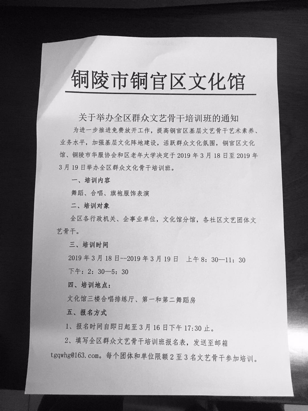 群众文艺骨干培训班-铜官区人民政府