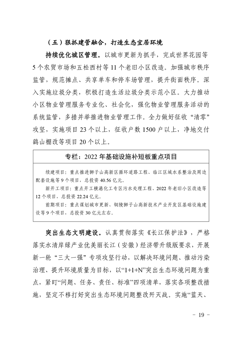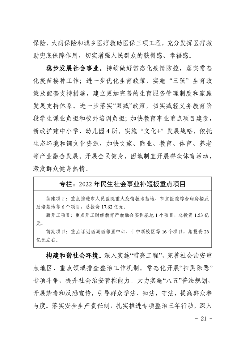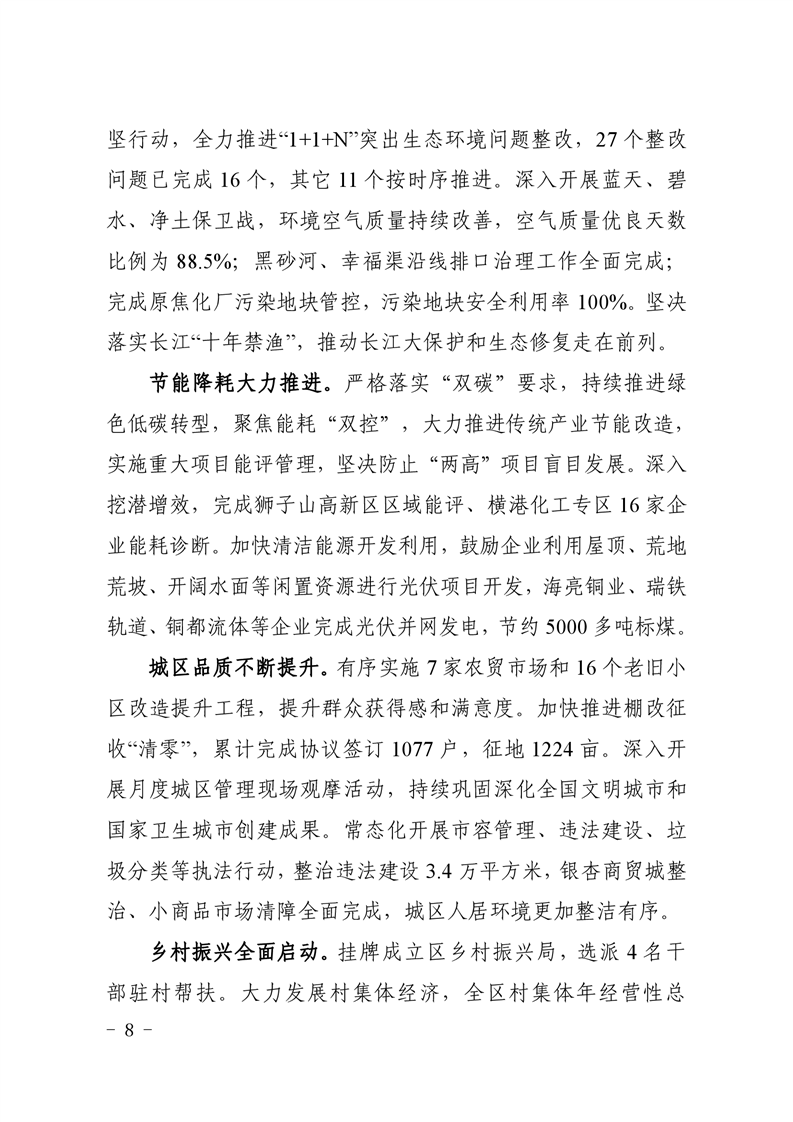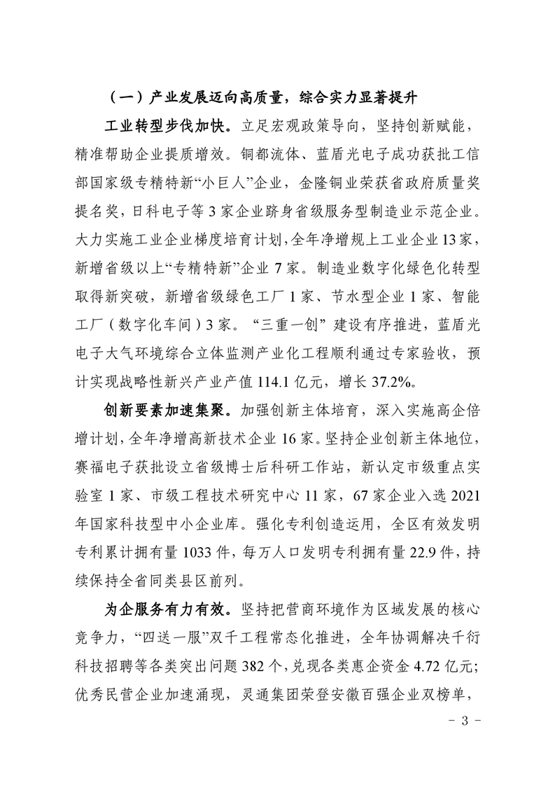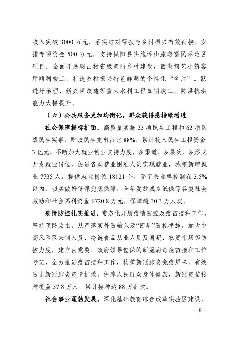关于铜官区2021年国民经济和社会发展计划执行情况与2022年计划草案的报告-铜官区人民政府