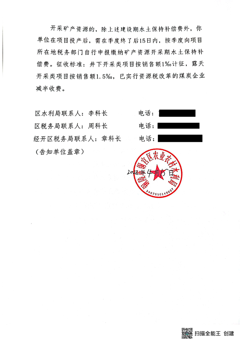 承诺4号 井湖输变电工程承诺书和水土保持补偿费告知书(