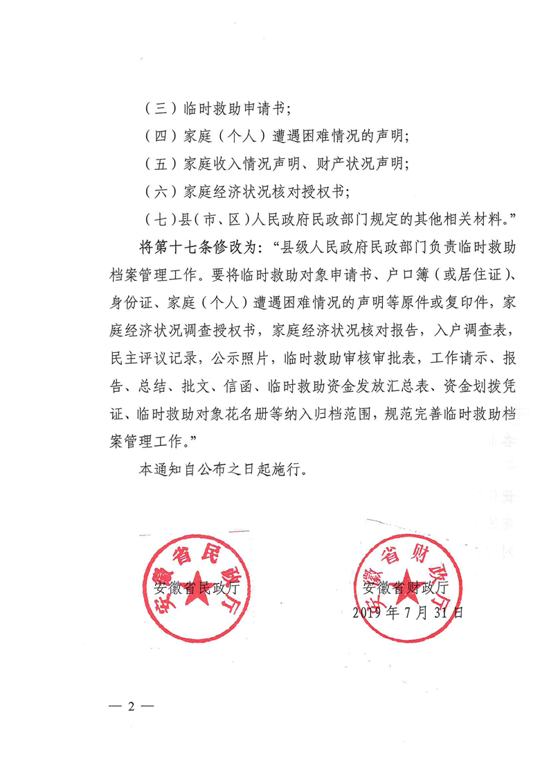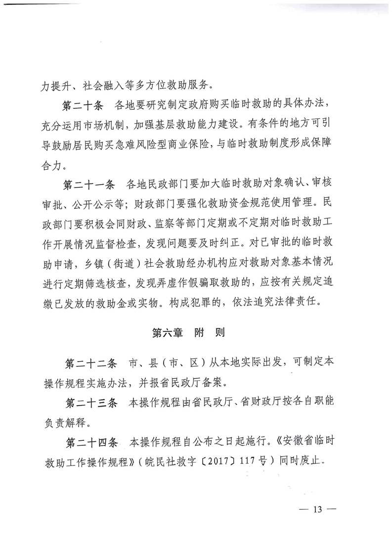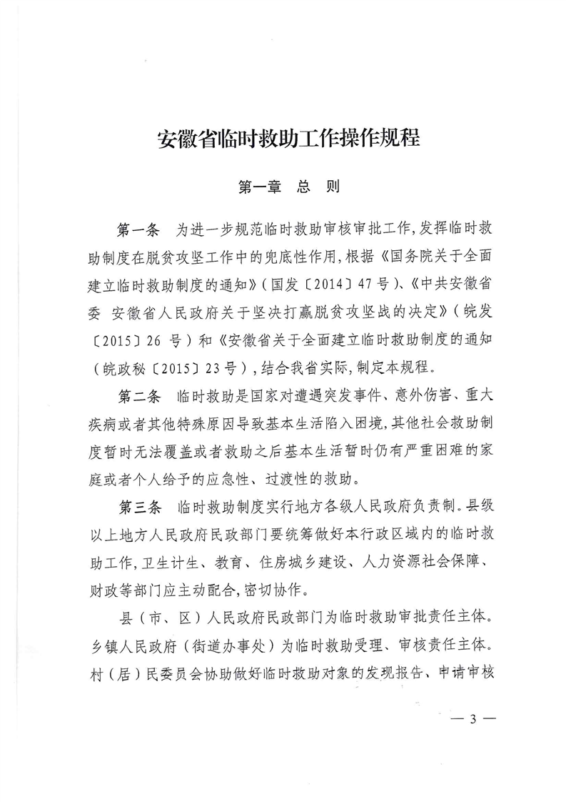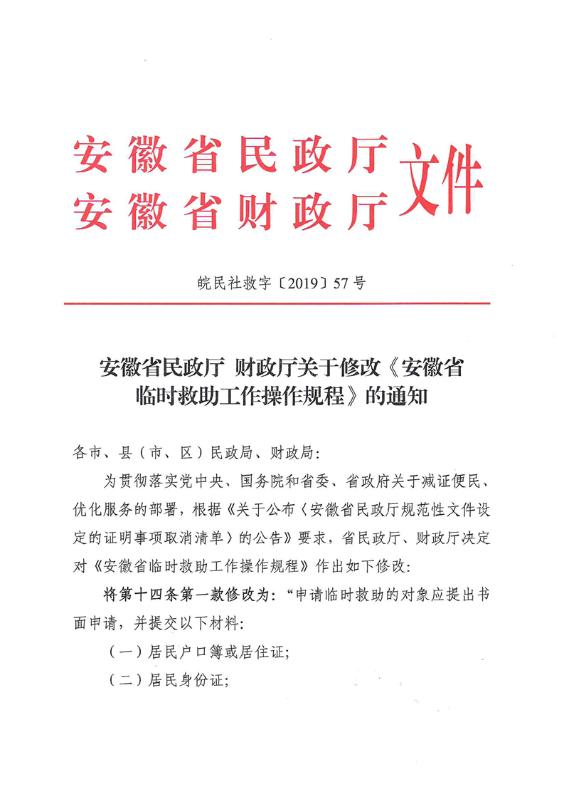 《安徽省临时救助工作操作规程》(皖民社救字〔2019〕57号)