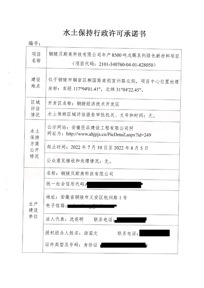水土保持行政许可承诺书----2022年11号-铜官区人民政府