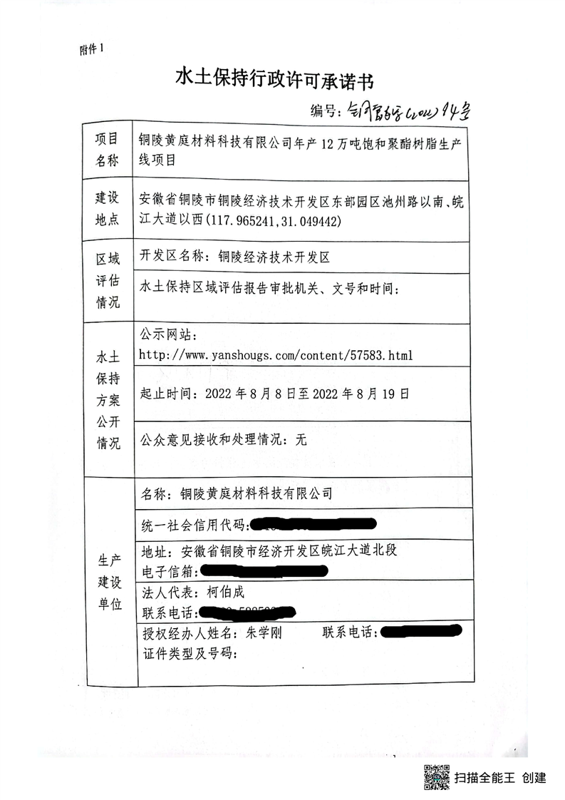 水土保持行政许可承诺书----2022年14号-铜官区人民政府