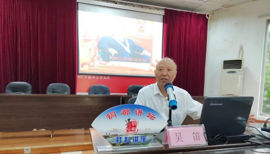 2022年9月25日下午四点零八分,由铜陵市铜文化研究会与铜官区图书馆联合举办的“发扬渡江精神,赓续红色血脉”纪念先烈.礼赞英雄.欢度国庆主题讲座在图书馆一楼学术报告厅内开讲,特邀铜陵市社科专家、市铜文化研究会会长吴笛先生主讲,活动吸引了30余位读者到场聆听。