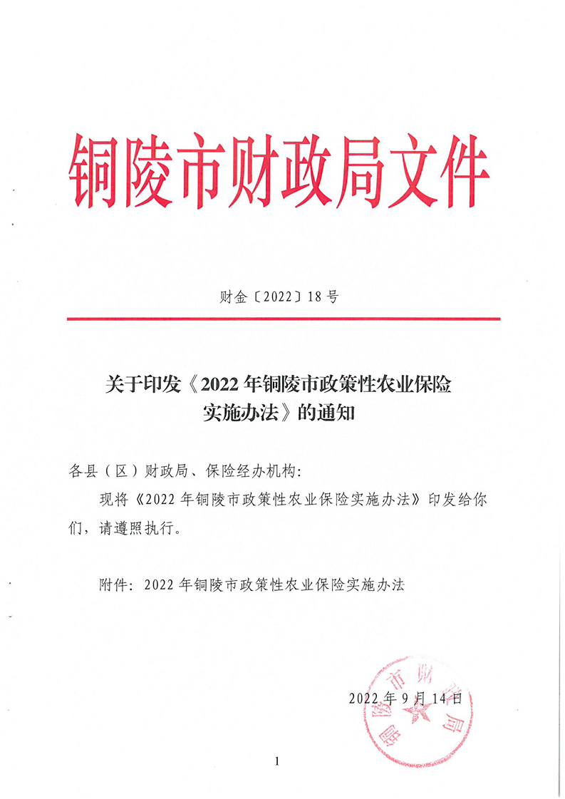 【铜官区财政局】农业保险保费补贴管理办法及分配标准-铜官区人民政府