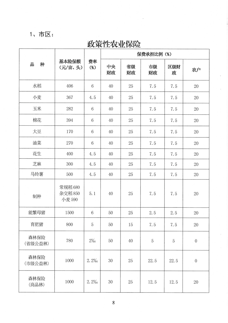 【铜官区财政局】农业保险保费补贴管理办法及分配标准