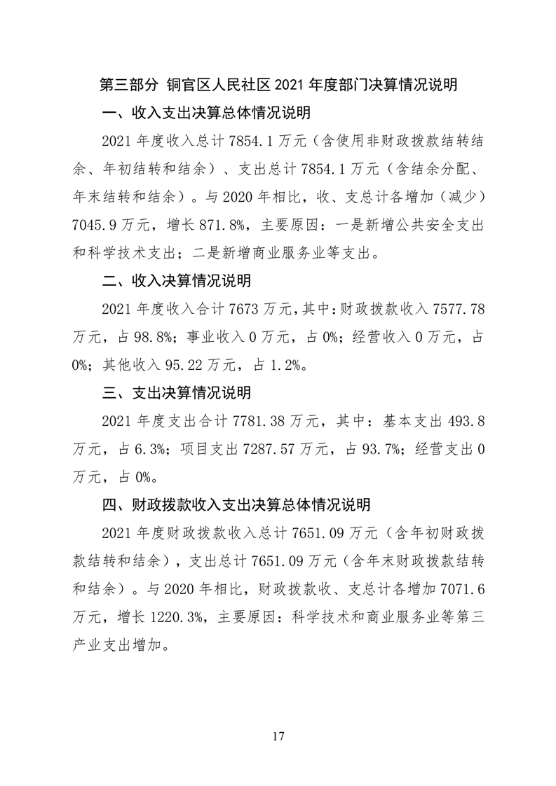 铜官区人民社区2021年度部门决算-铜官区人民政府