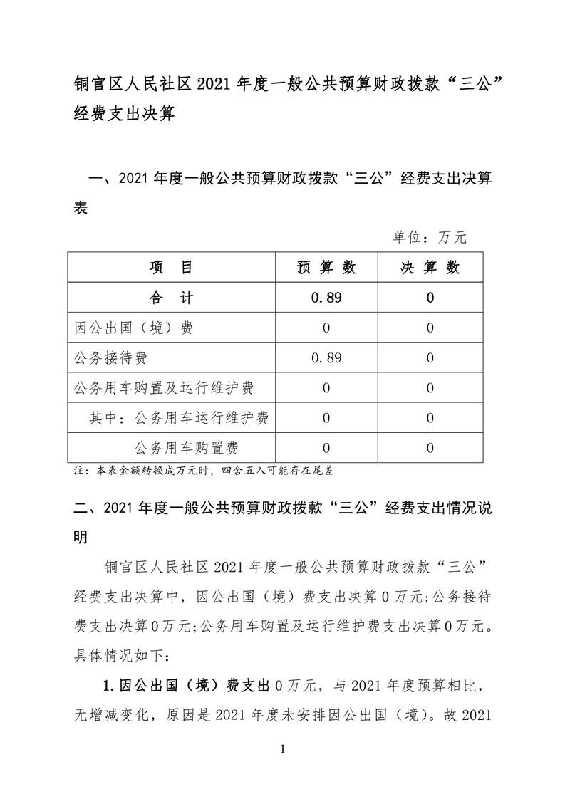 铜官区人民社区2021年度一般公共预算财政拨款“三公” 经费支出决算-铜官区人民政府
