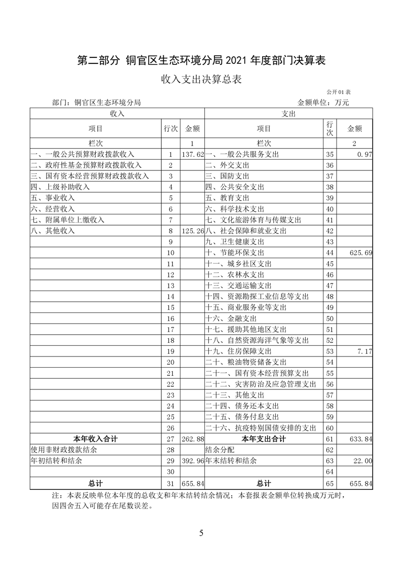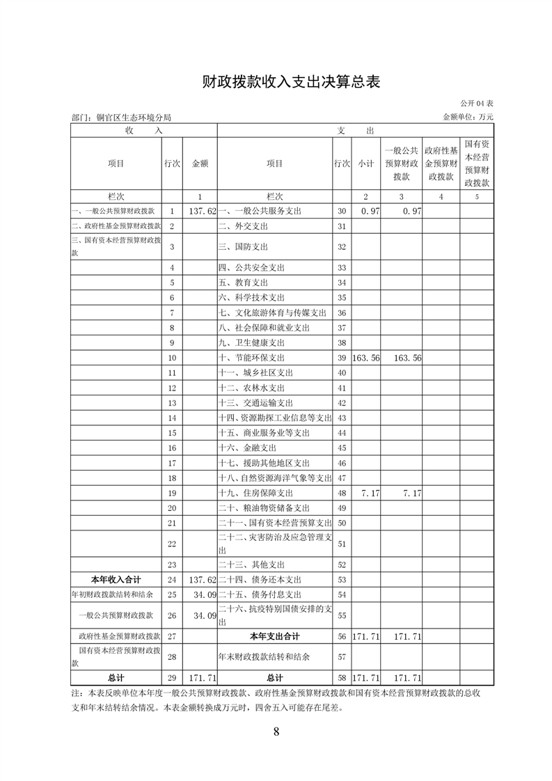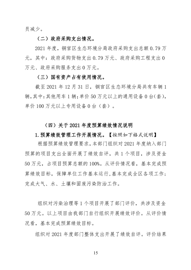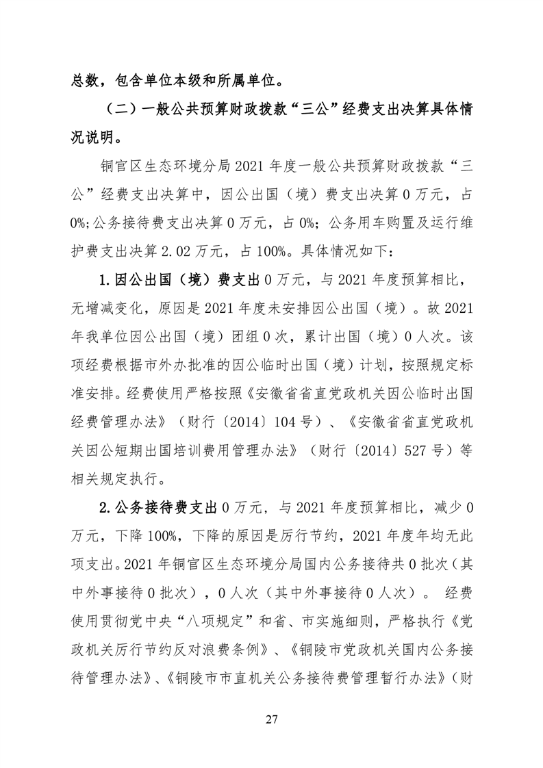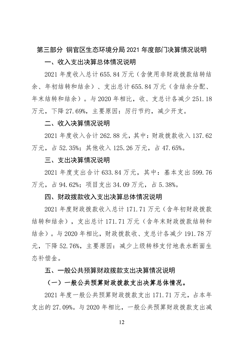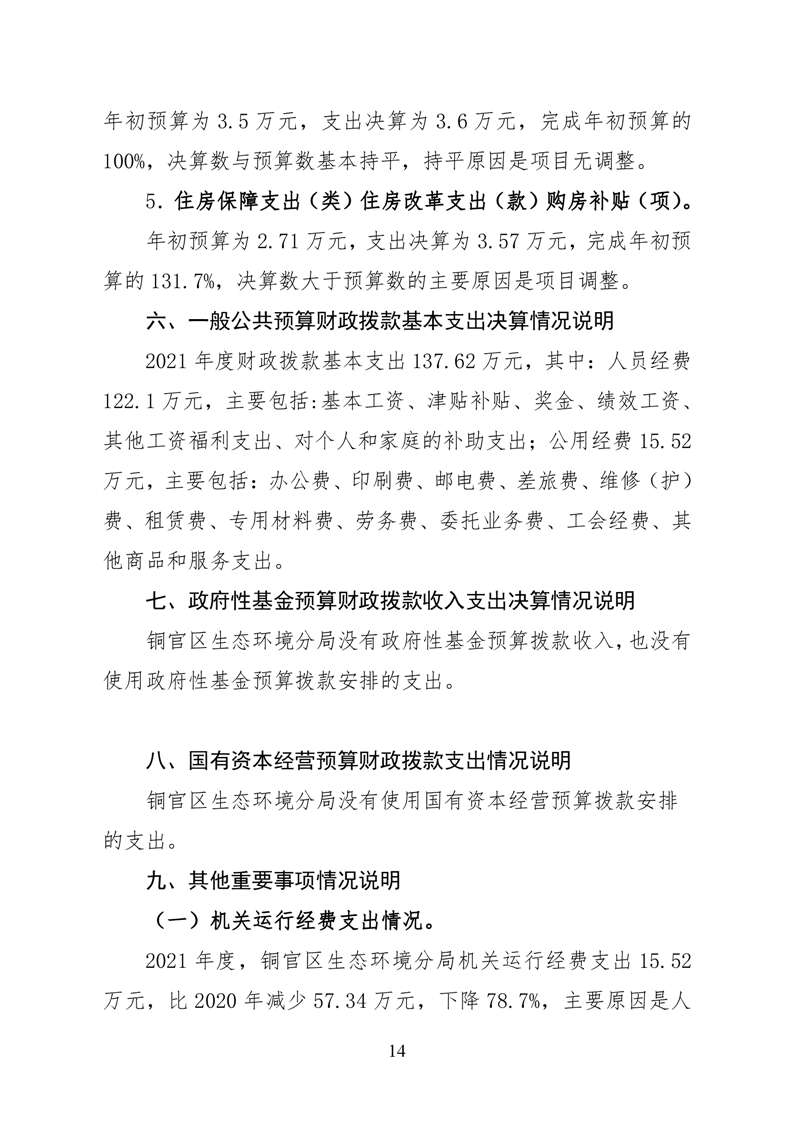 铜官区生态环境分局2021年度部门决算-铜官区人民政府