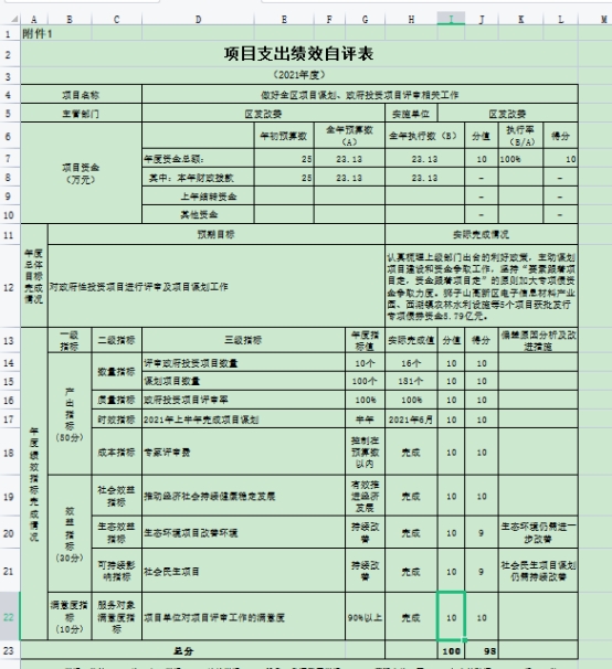 截至2021年底,共支付项目谋划、政府投资项目评审相关工作经费23.13万元,绩效目标总体完成情况良好。