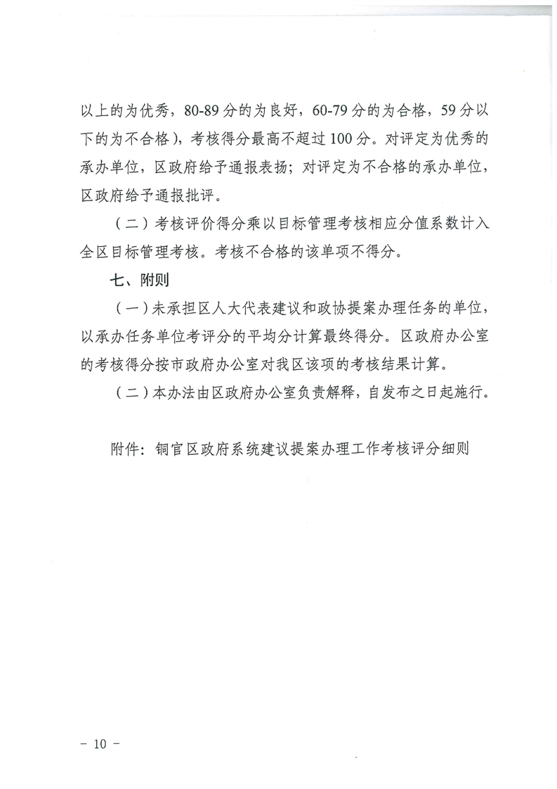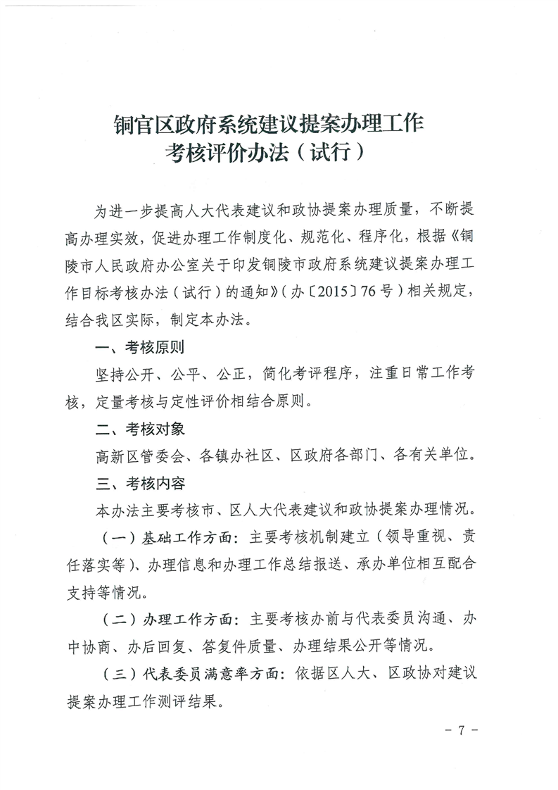 【建议提案办理制度】铜官区政府系统建议提案办理工作考核评价办法(试行)-铜官区人民政府