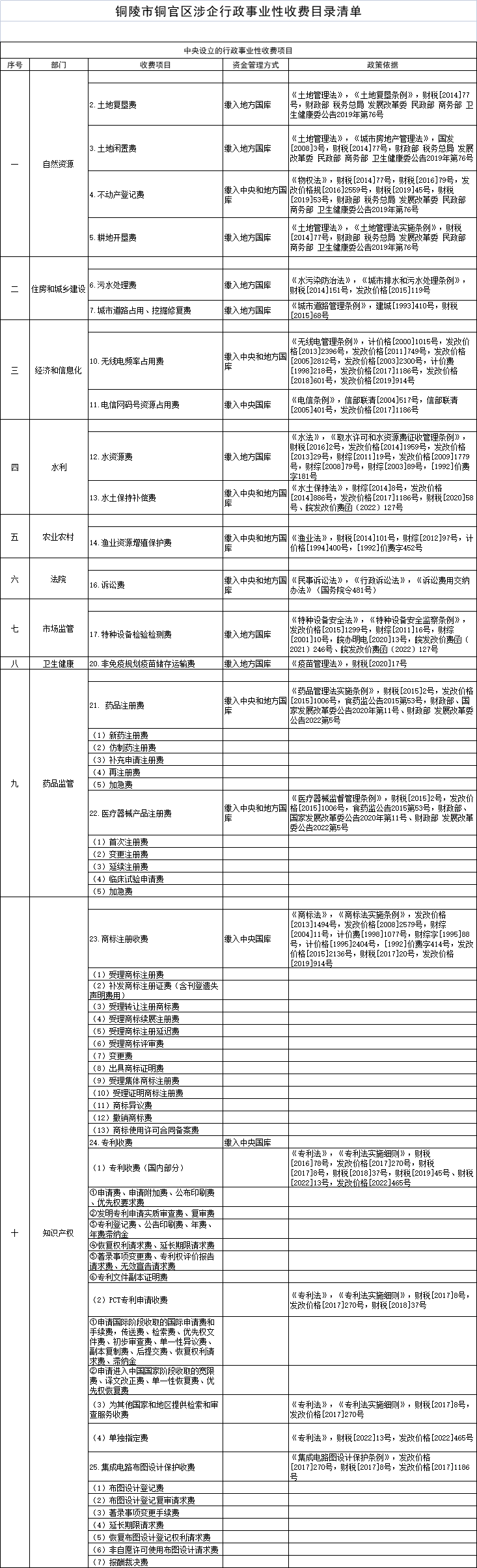 铜陵市铜官区涉企行政事业性收费目录清单-铜官区人民政府