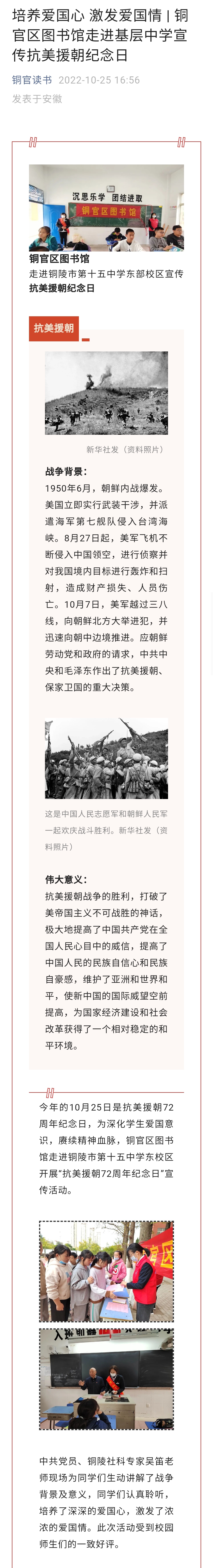 培养爱国心 激发爱国情 | 铜官区图书馆走进基层中学宣传抗美援朝纪念日