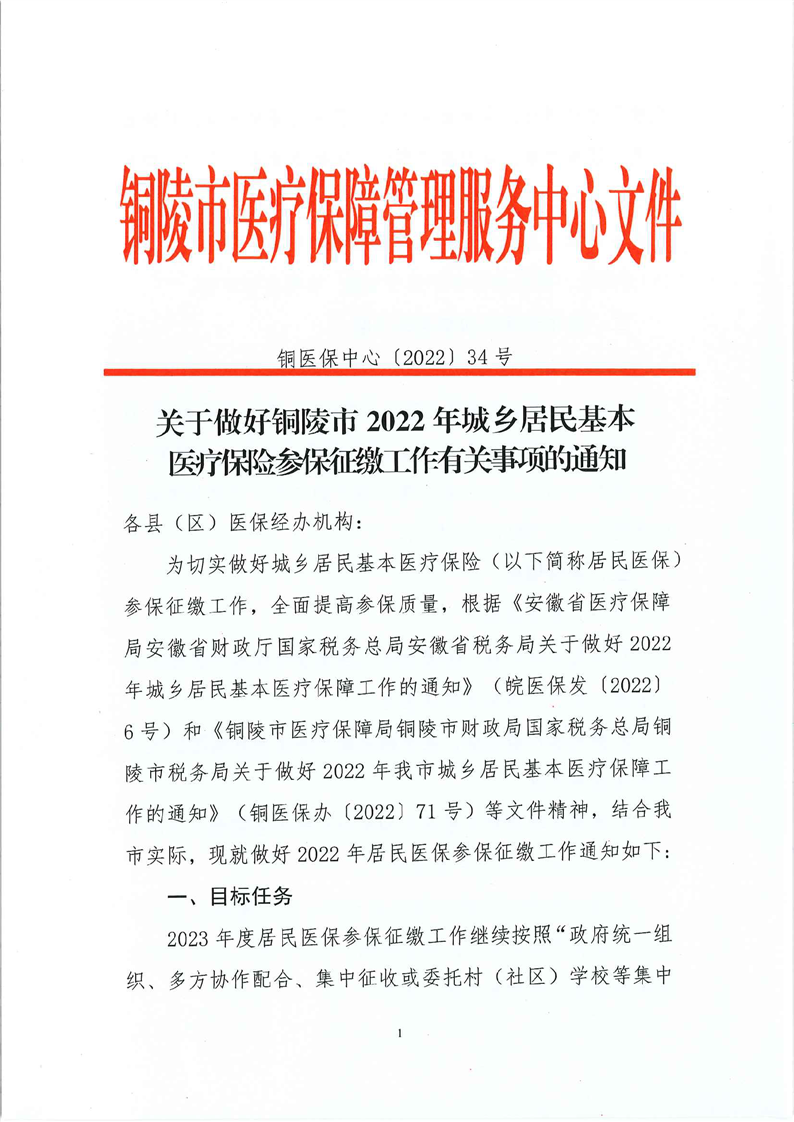 关于做好铜陵市2022年城乡居民基本医疗保险参保征缴工作有关事项的通知
