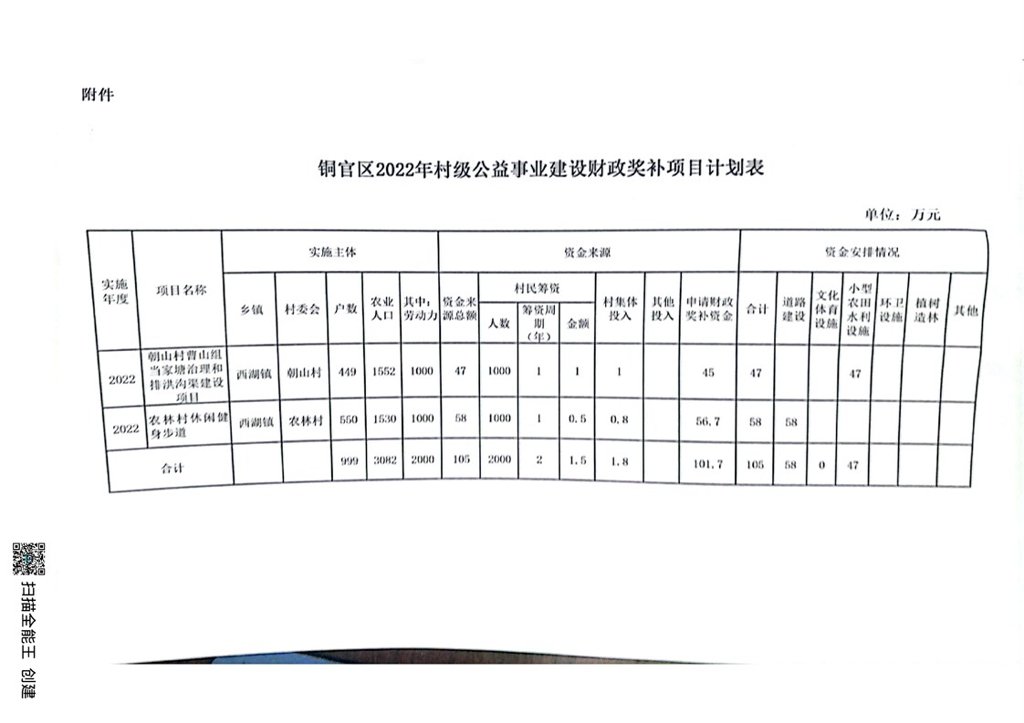 西湖镇2022年度村级公益事业建设一事一议财政奖补项目计划表-铜官区人民政府