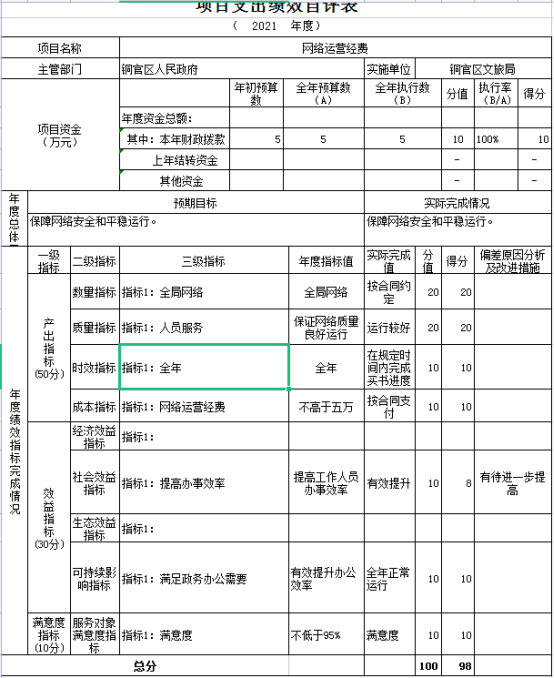截至2021年底,共支付区网络运营经费5万元,绩效目标总体完成情况良好。