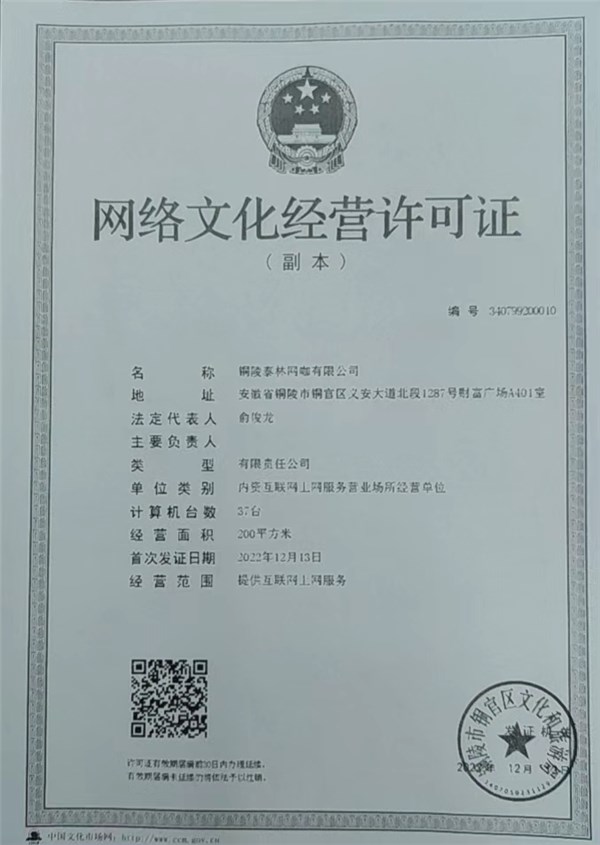 网络经营许可(铜陵泰林网咖有限公司)
