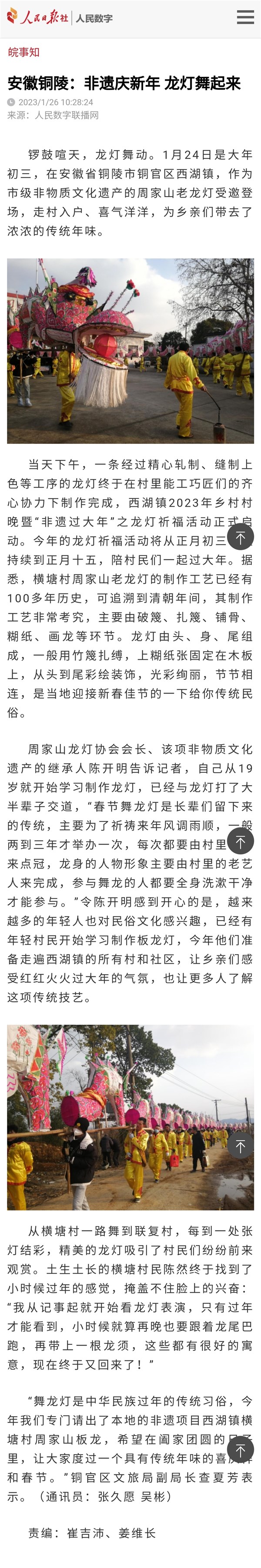 安徽铜陵:非遗庆新年 龙灯舞起来-铜官区人民政府
