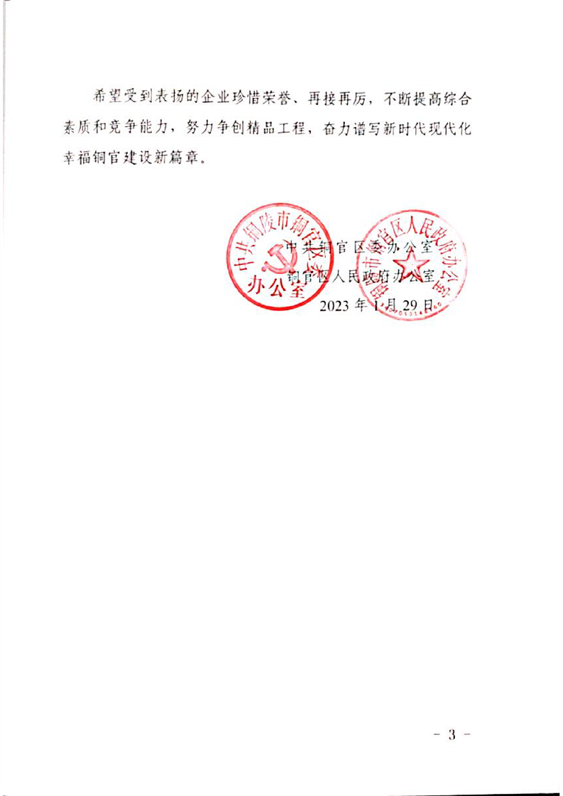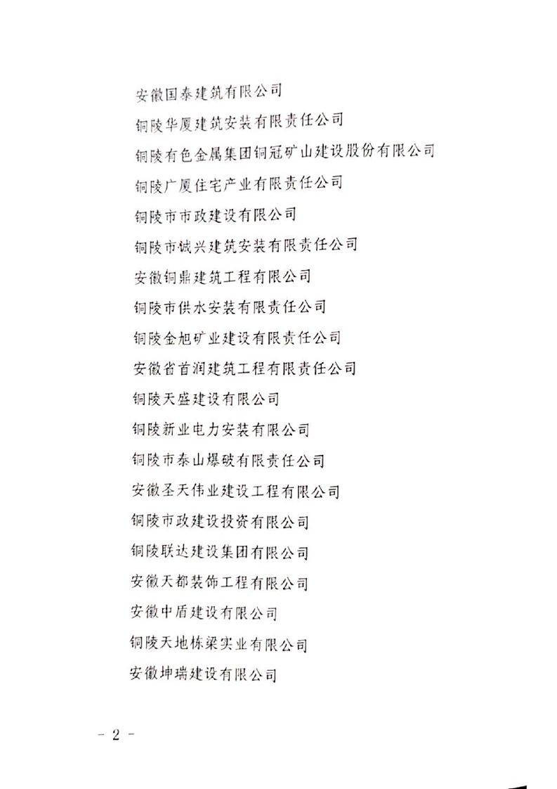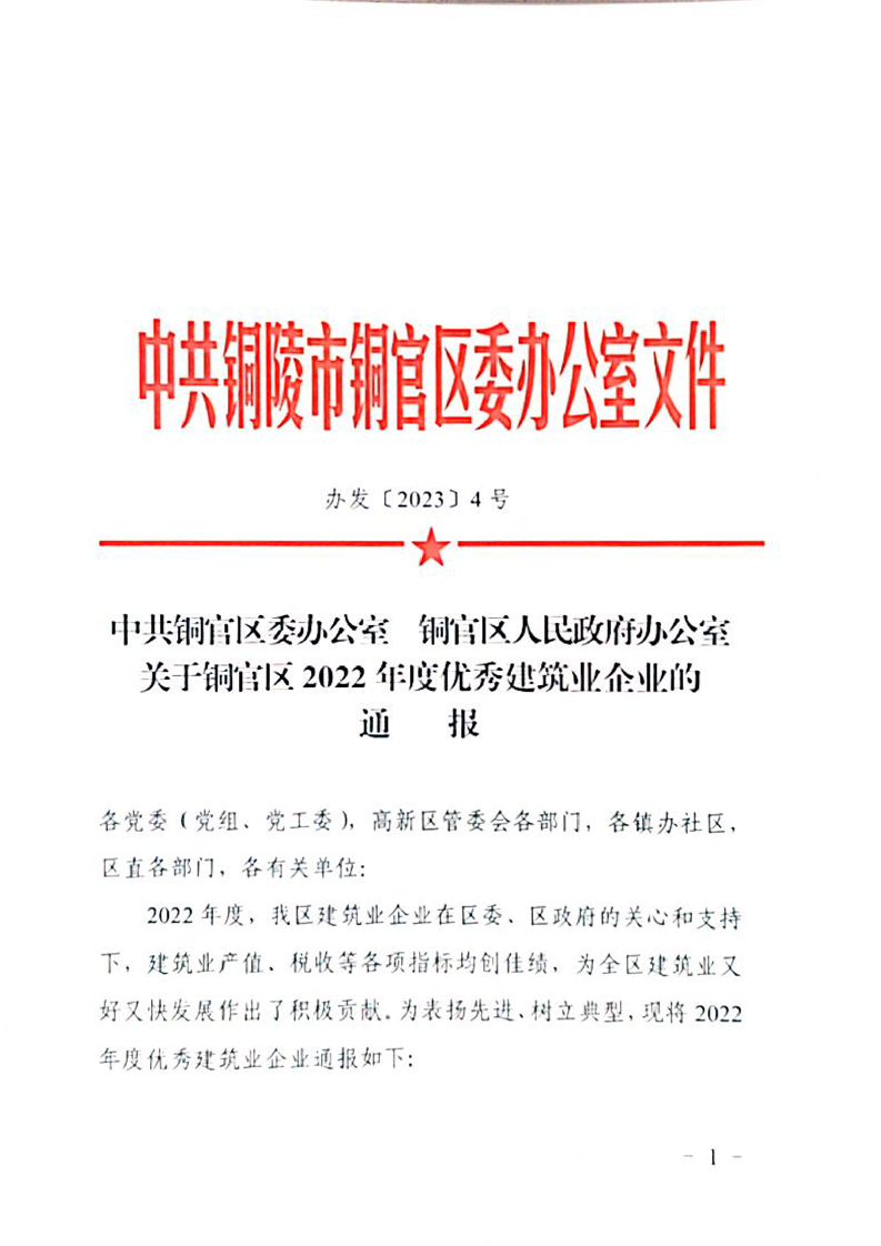 关于铜官区2022年度优秀建筑业企业的通报-铜官区人民政府