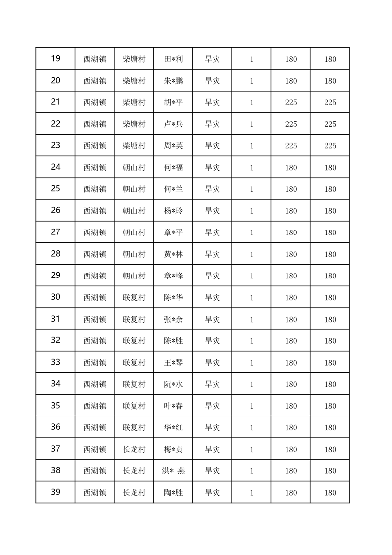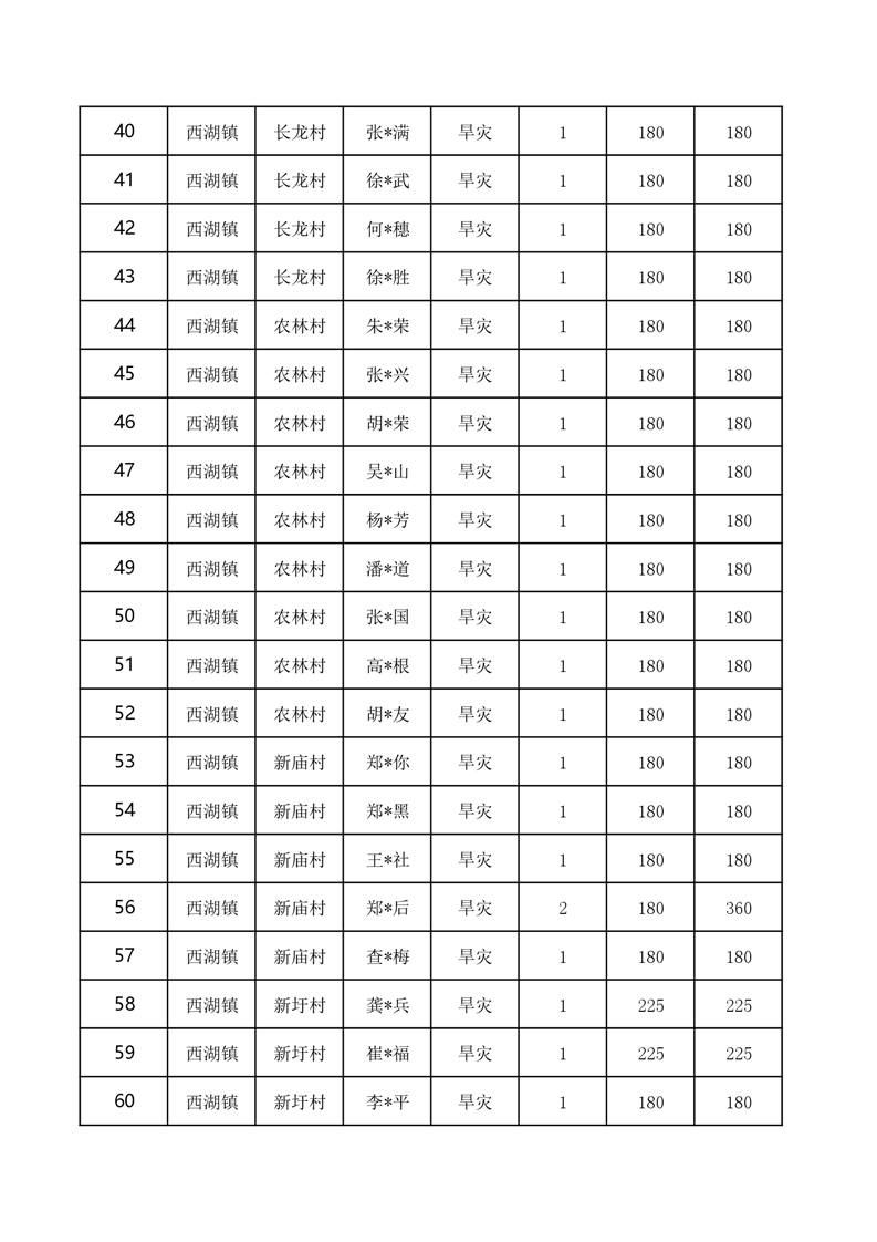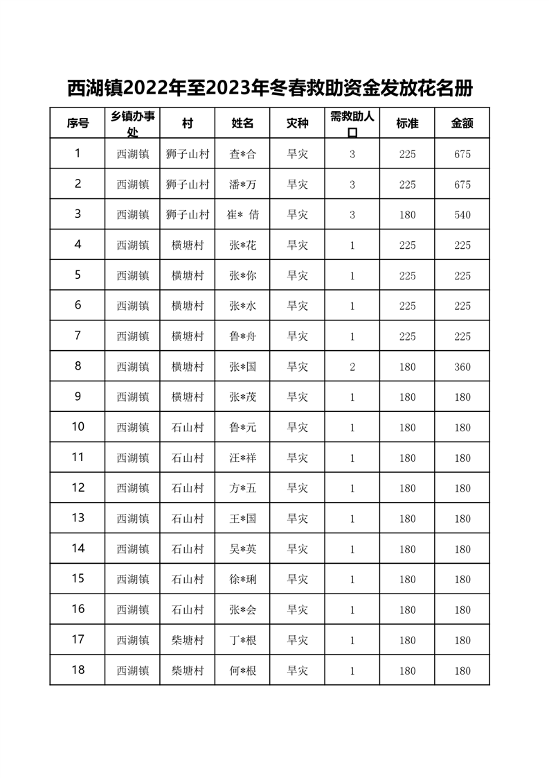 西湖镇2022年至2023年冬春救助资金发放花名册-铜官区人民政府