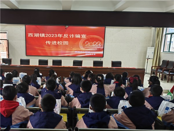 2月8日上午,西湖镇平安办借助宣传、文化部门联合开展的扫黄打非活动,在西湖中心小学开展“平安建设进校园”宣传教育活动。