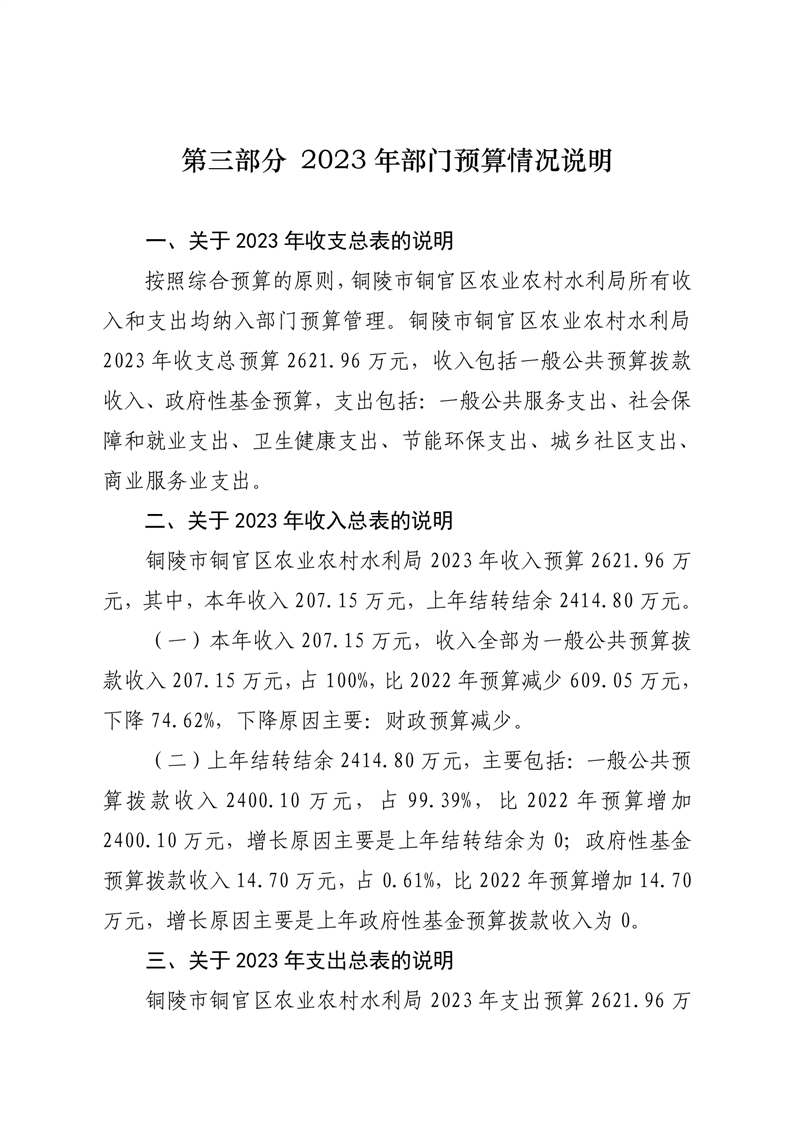 铜陵市铜官区农业农村水利局2023年部门预算-铜官区人民政府