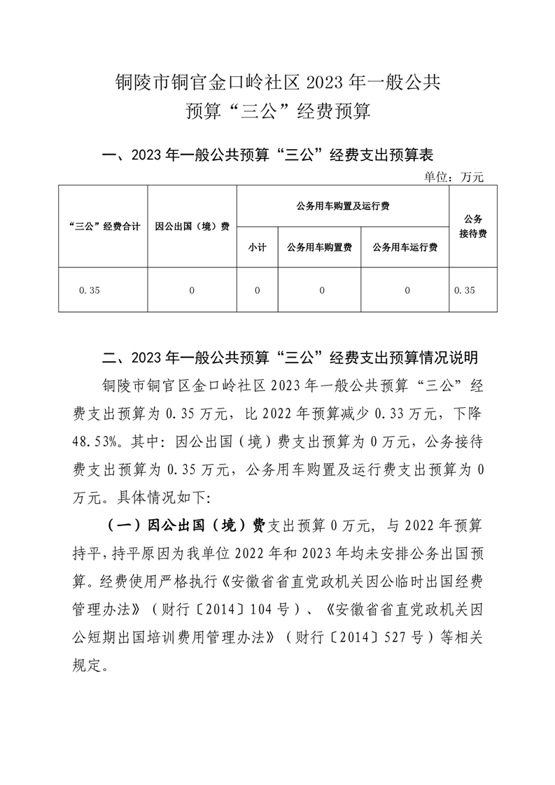 铜官区金口岭社区 2023年“三公”经费预算-铜官区人民政府