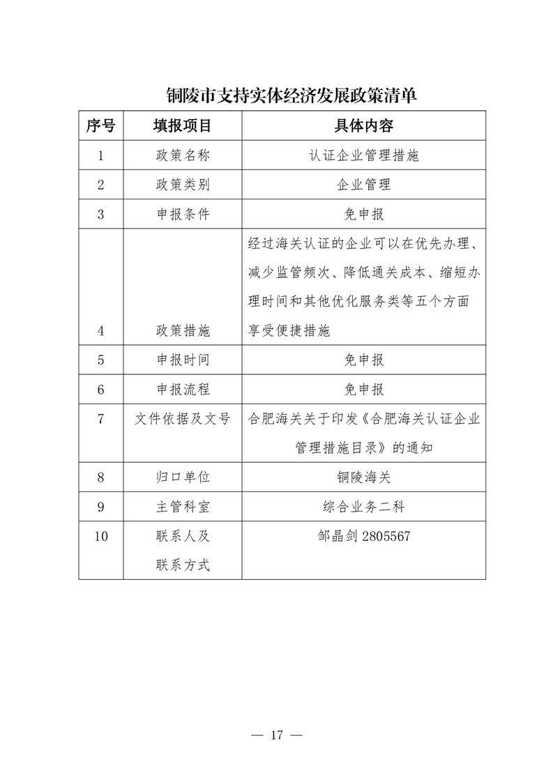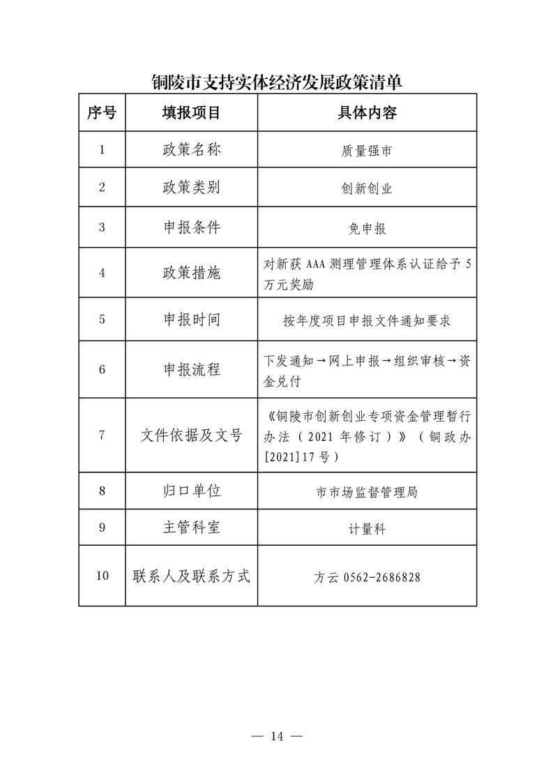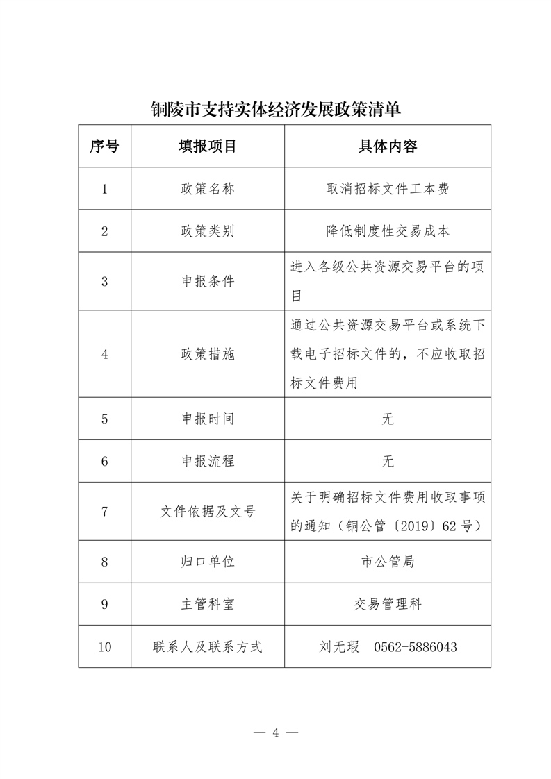 铜陵市支持实体经济发展政策清单(四)-铜官区人民政府