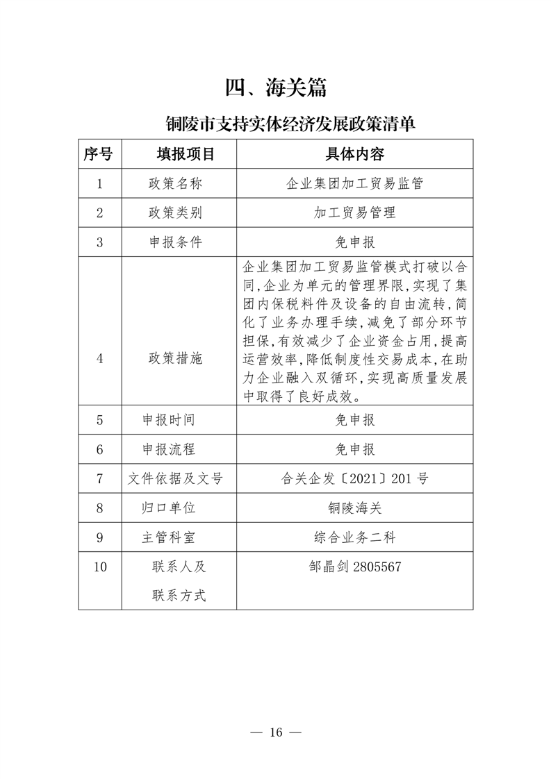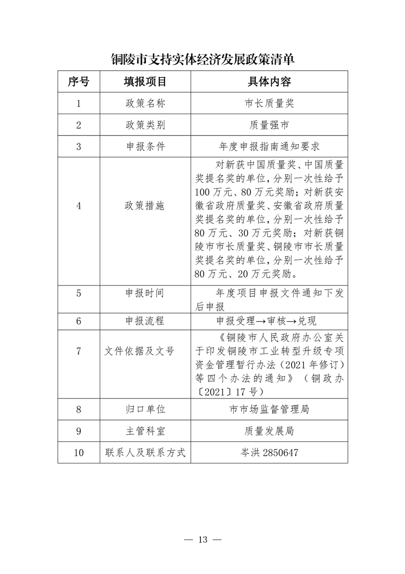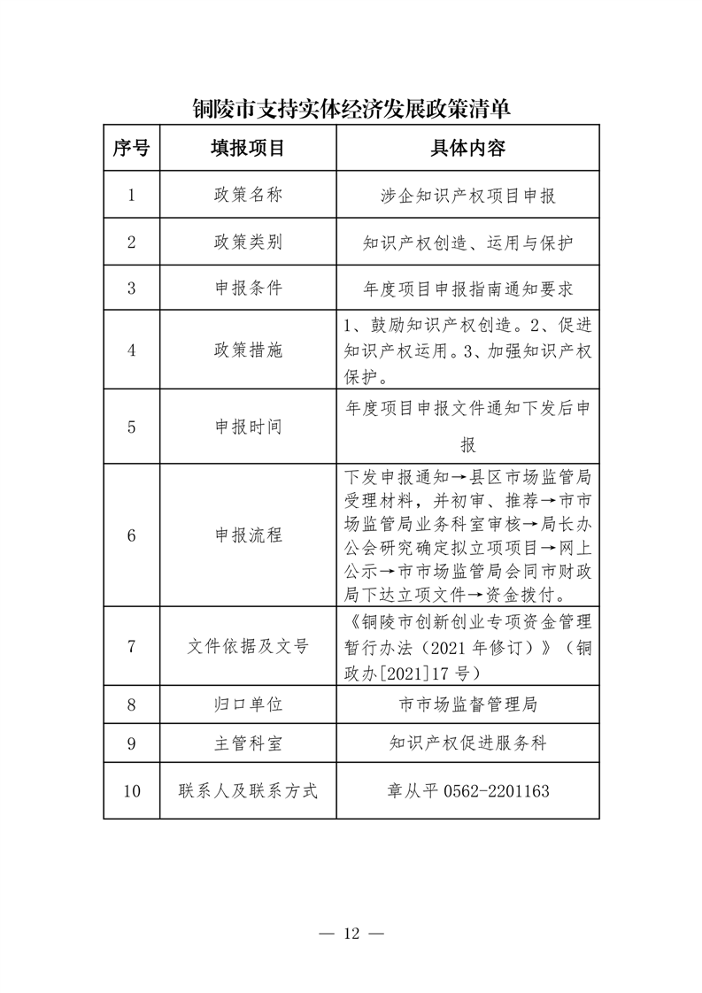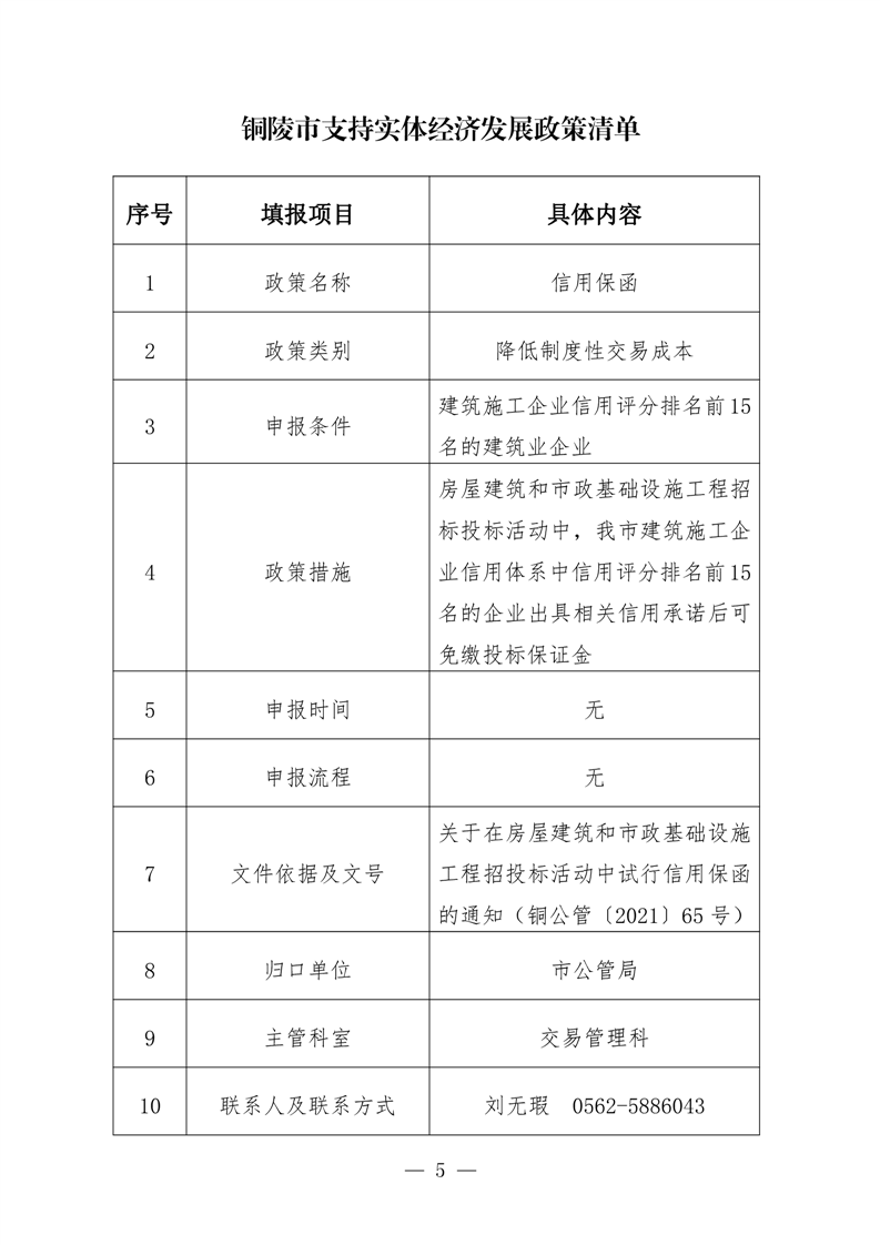 铜陵市支持实体经济发展政策清单(四)-铜官区人民政府