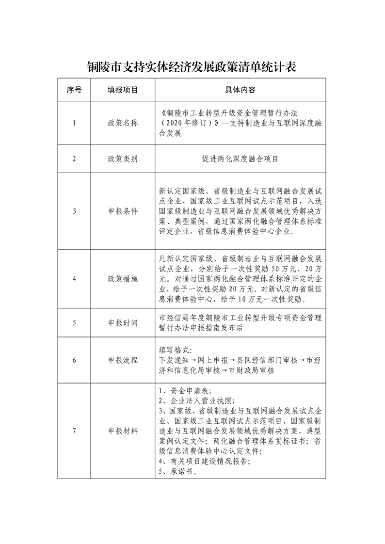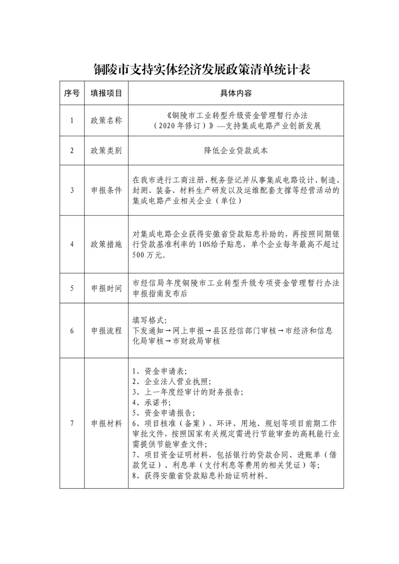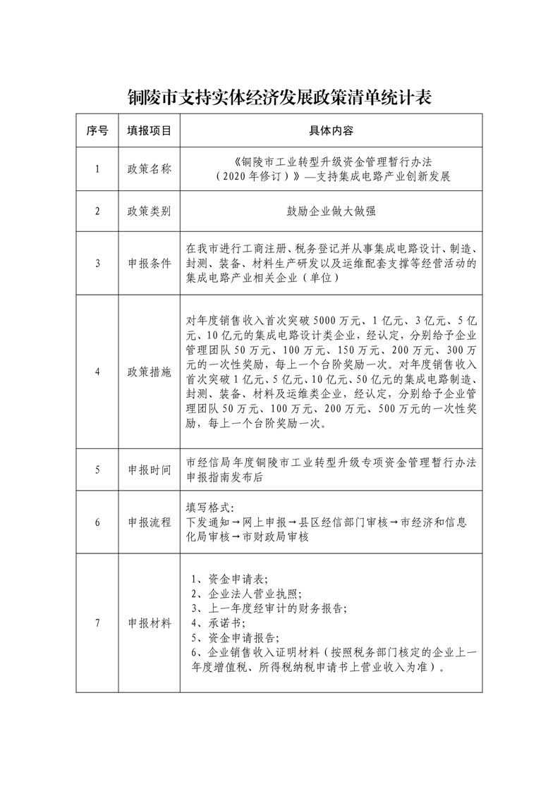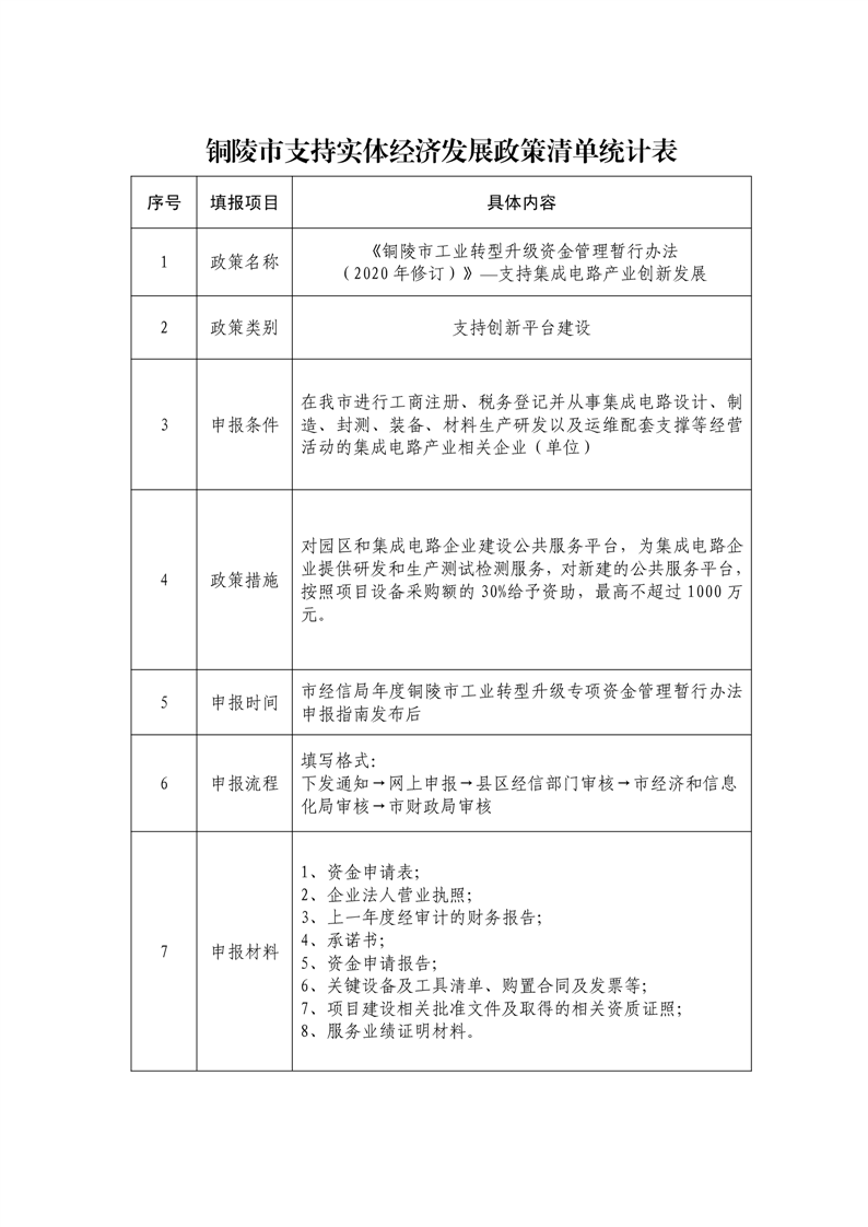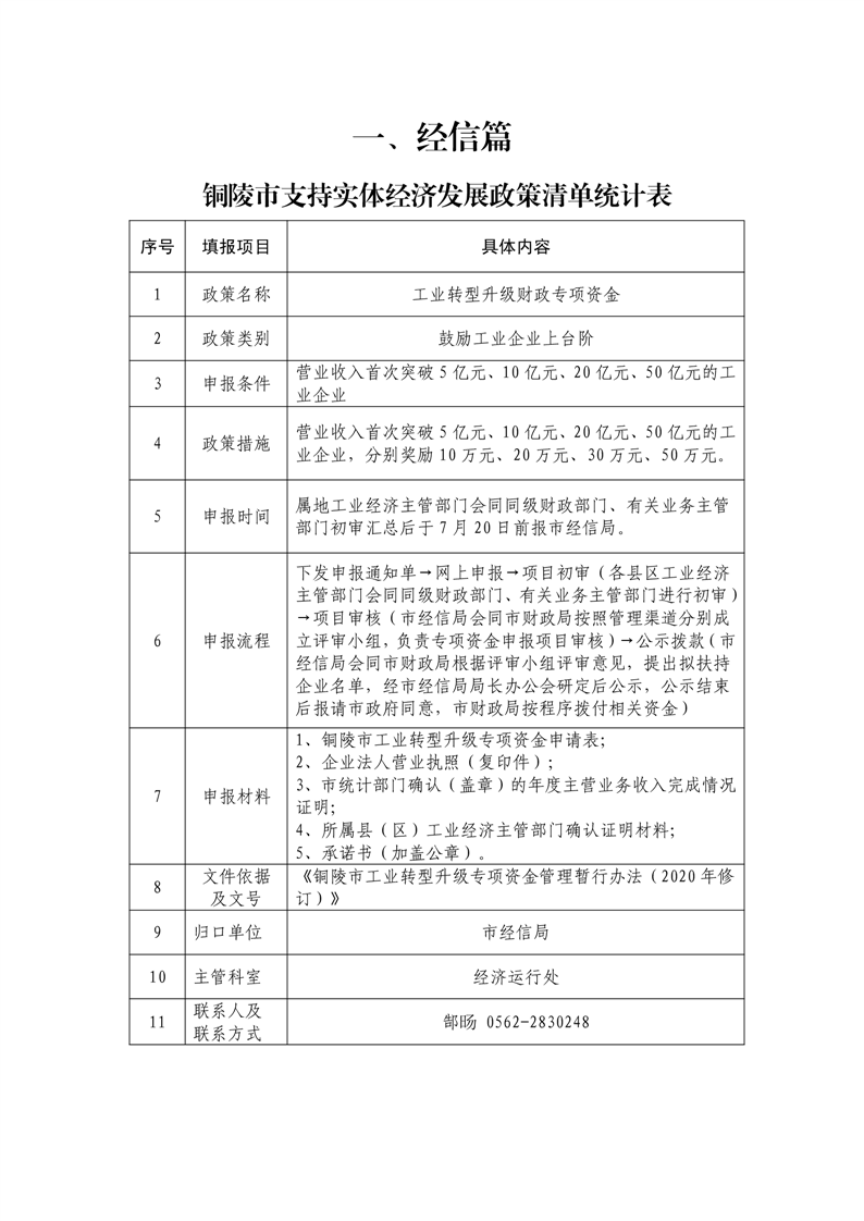 铜陵市支持实体经济发展政策清单(二)-铜官区人民政府