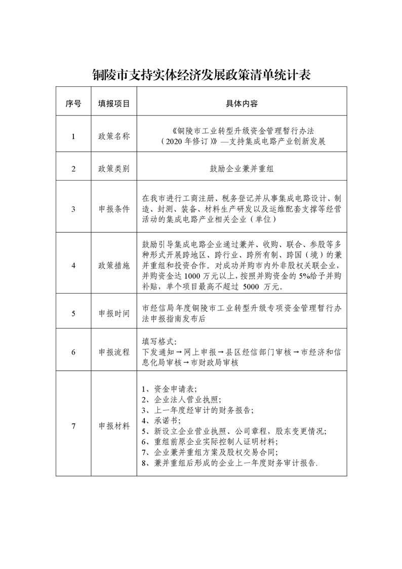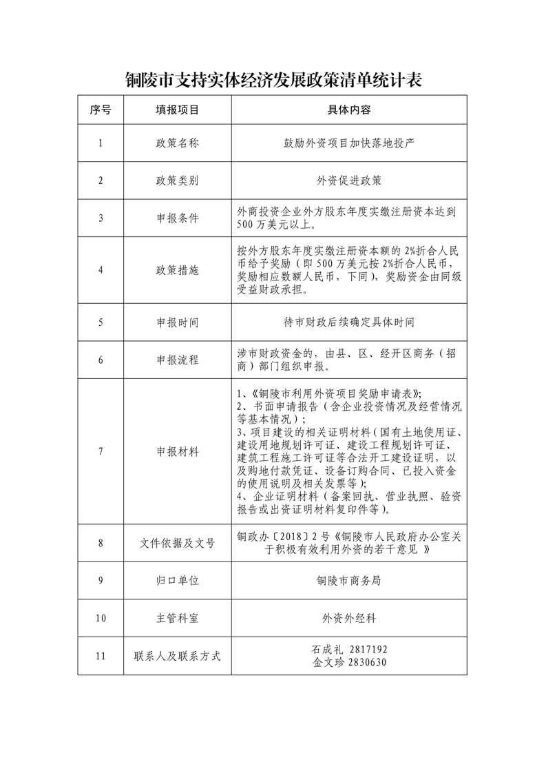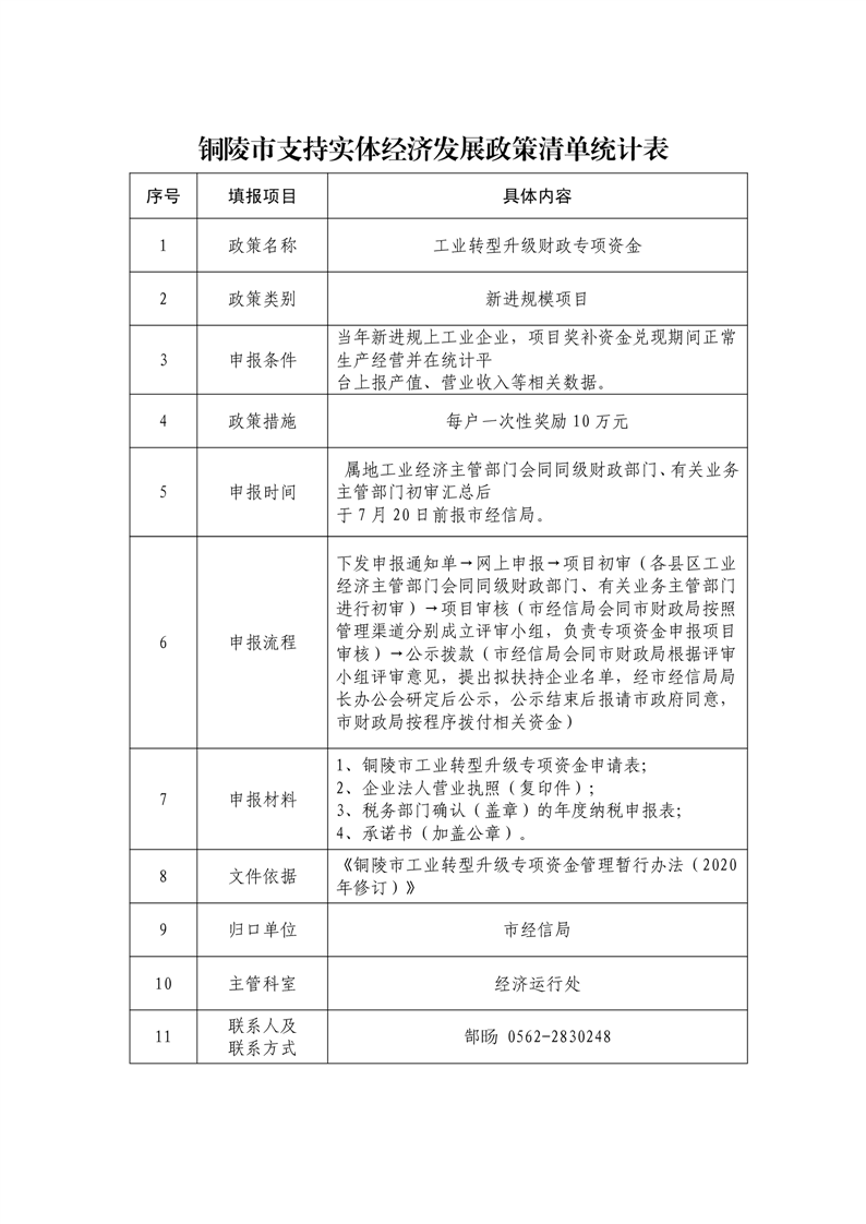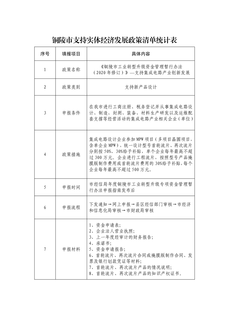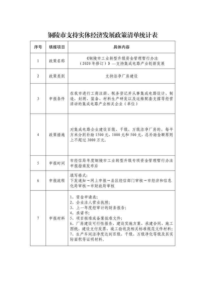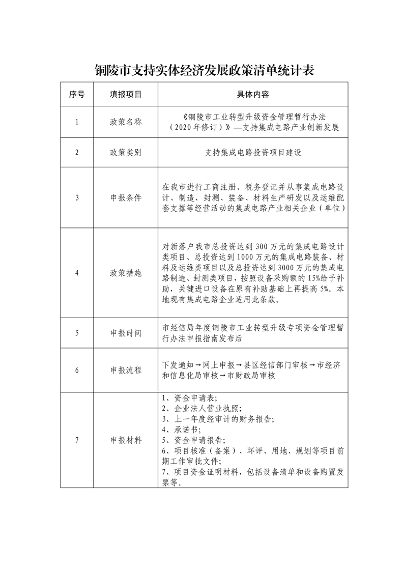 铜陵市支持实体经济发展政策清单(二)-铜官区人民政府