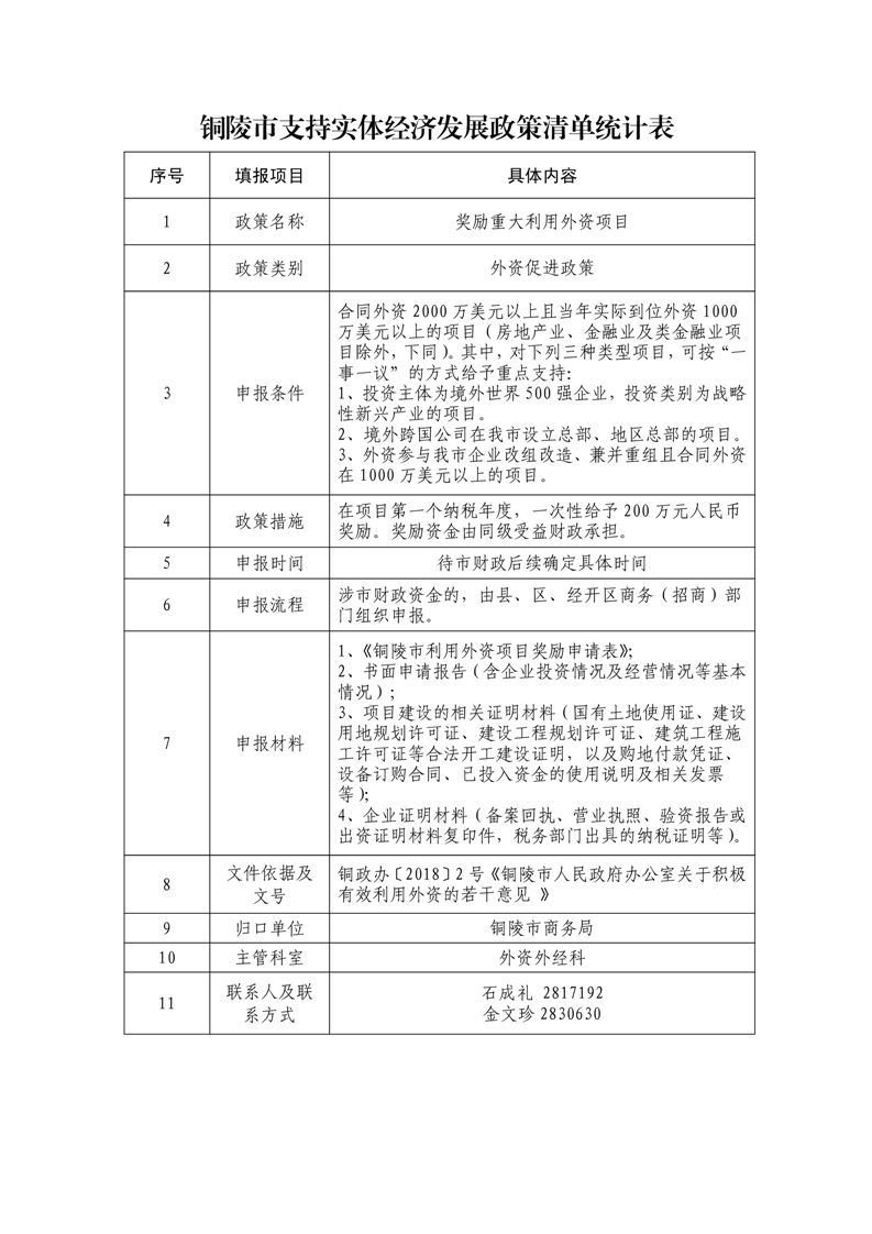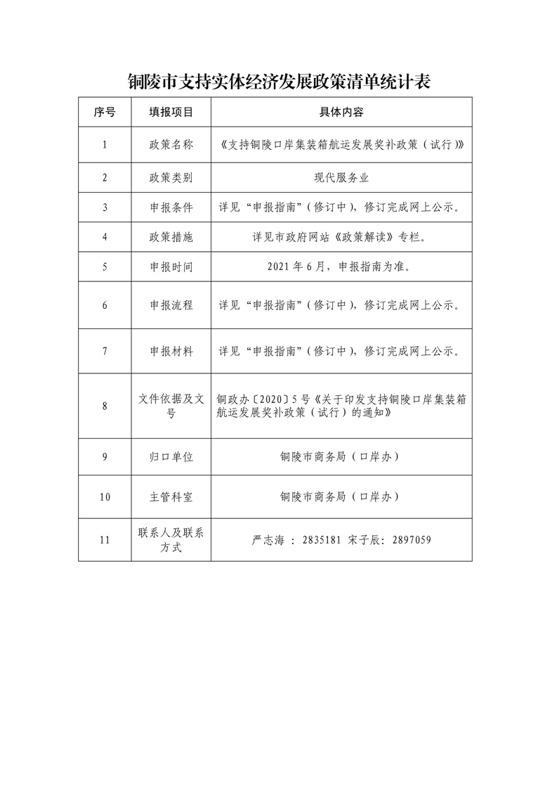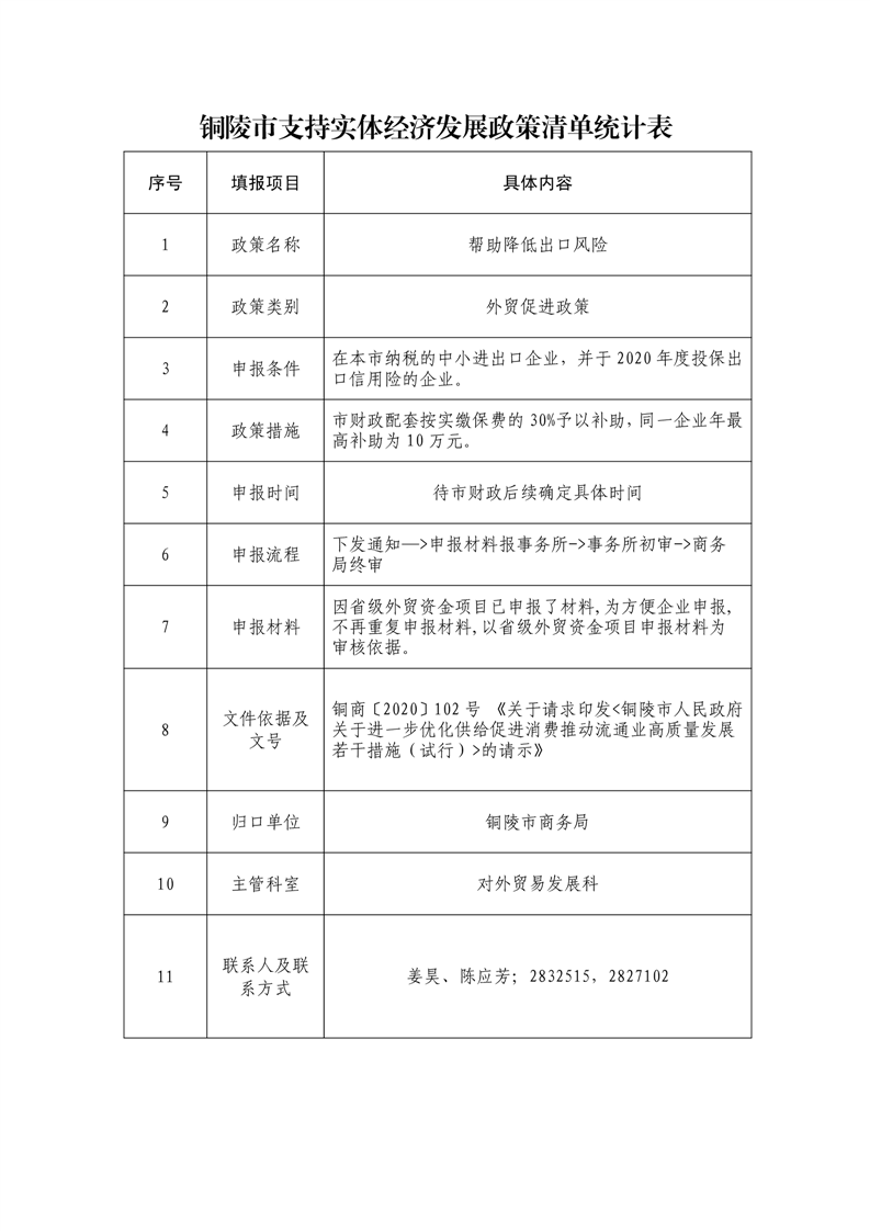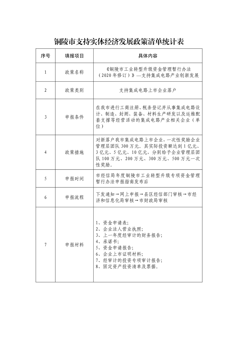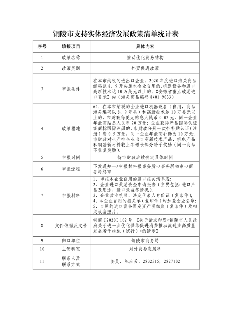 铜陵市支持实体经济发展政策清单(二)-铜官区人民政府