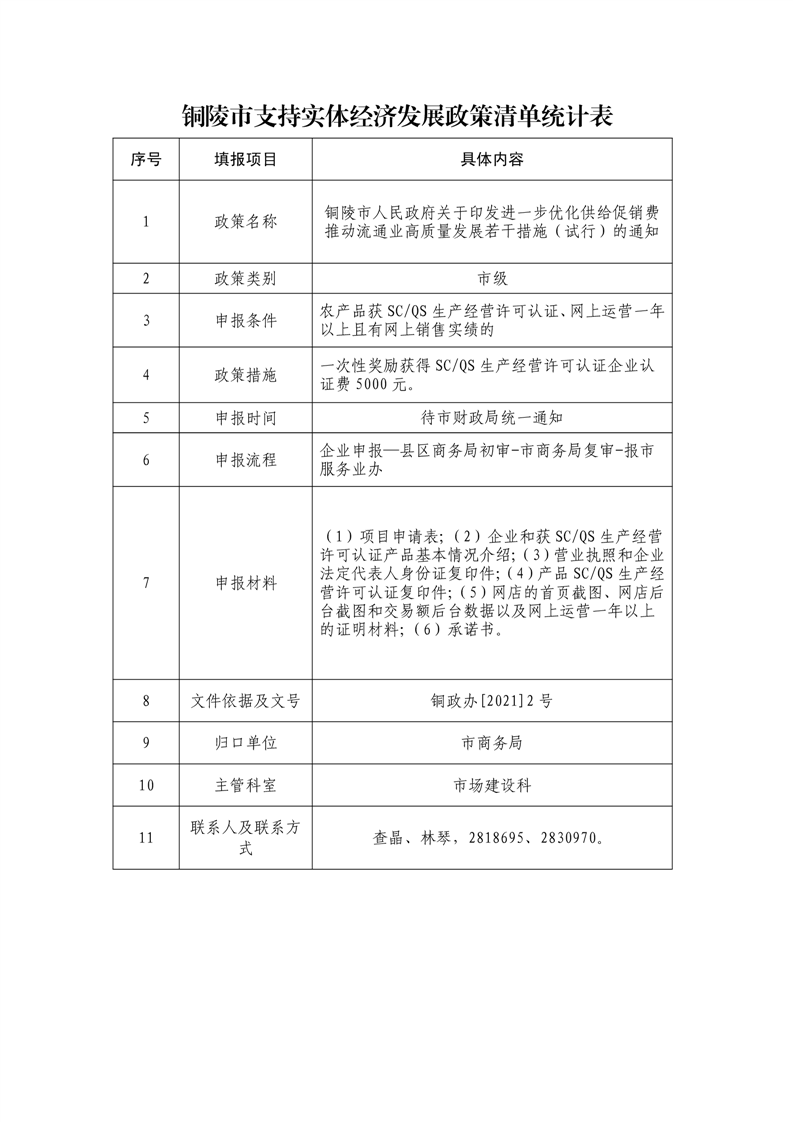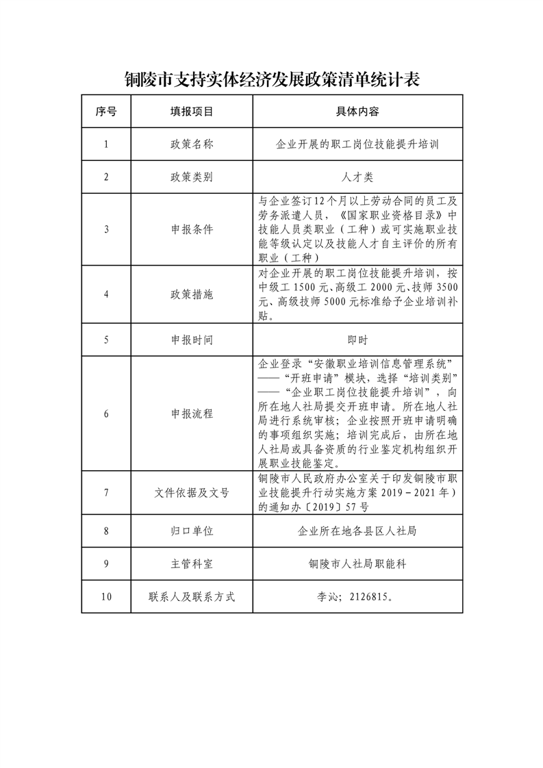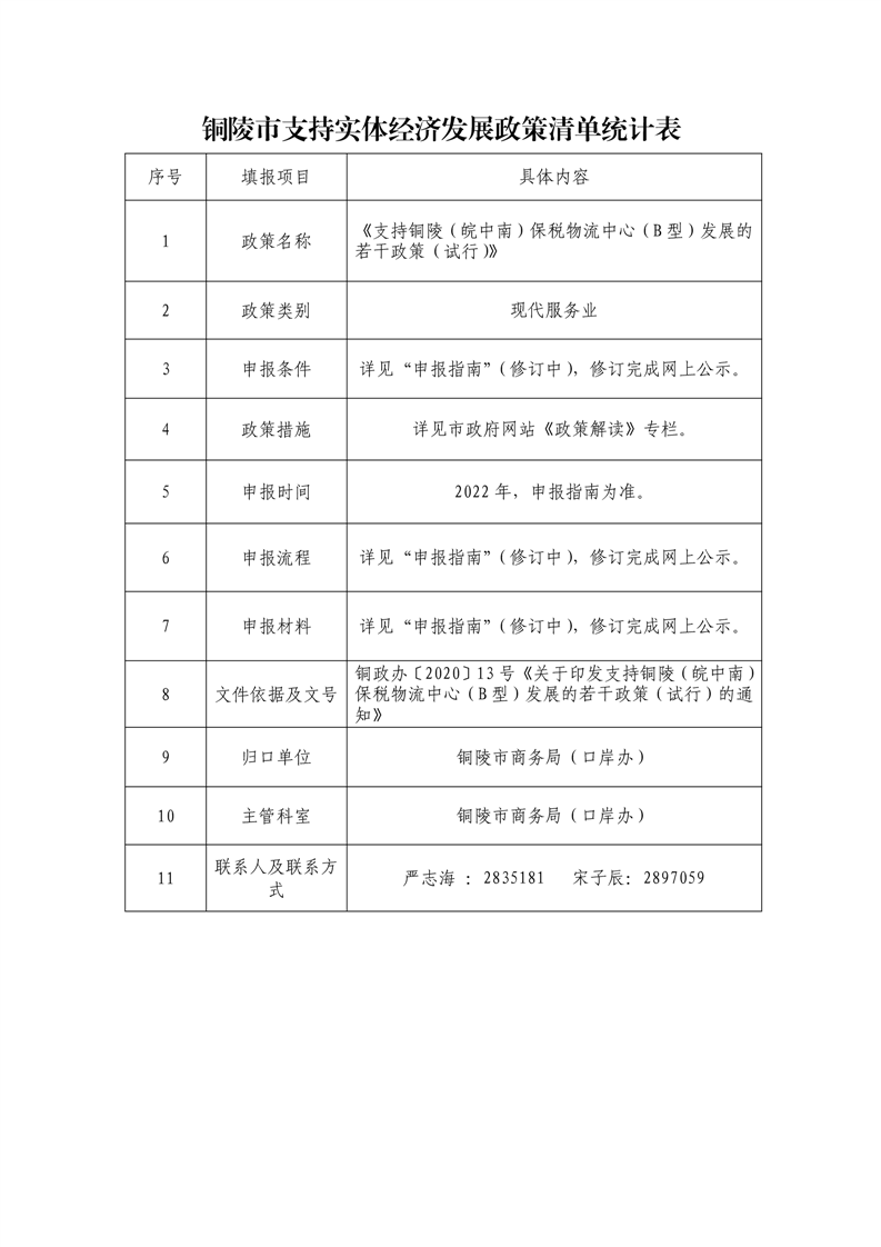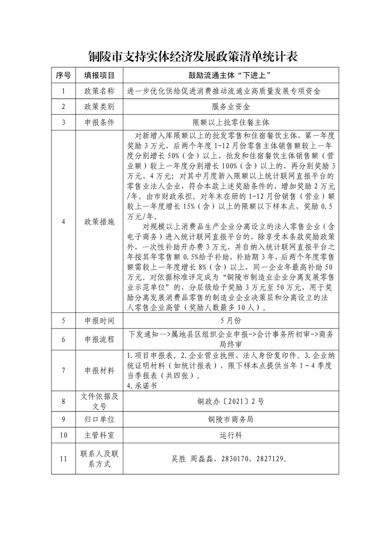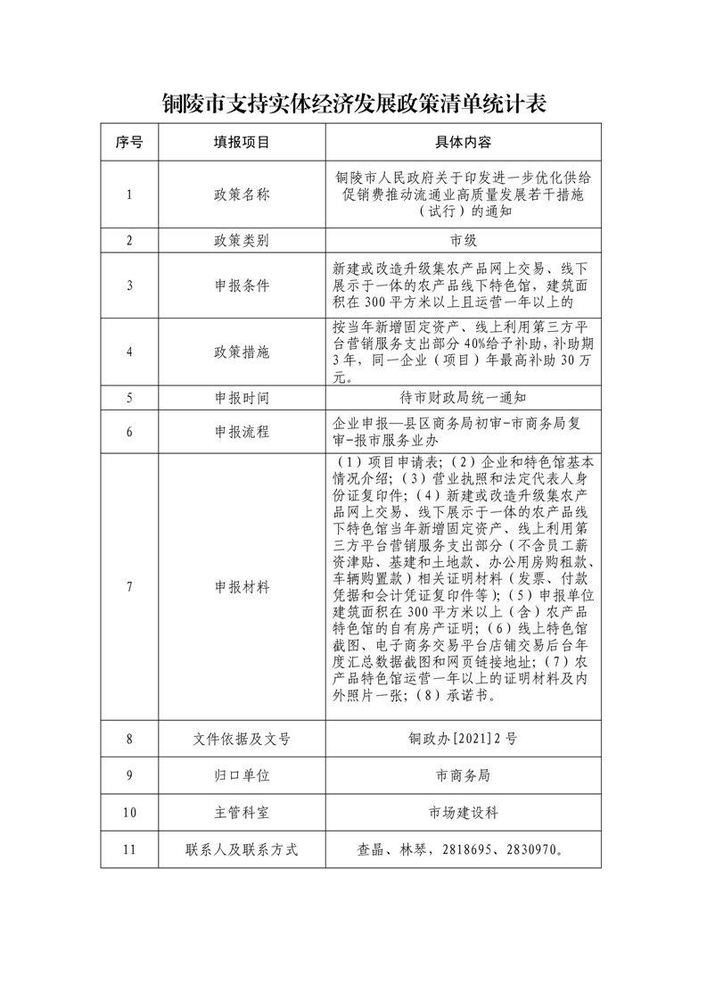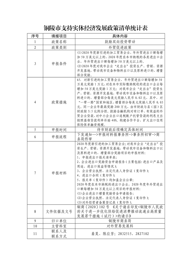 铜陵市支持实体经济发展政策清单(二)-铜官区人民政府