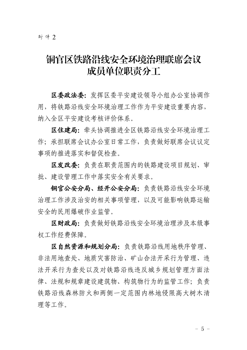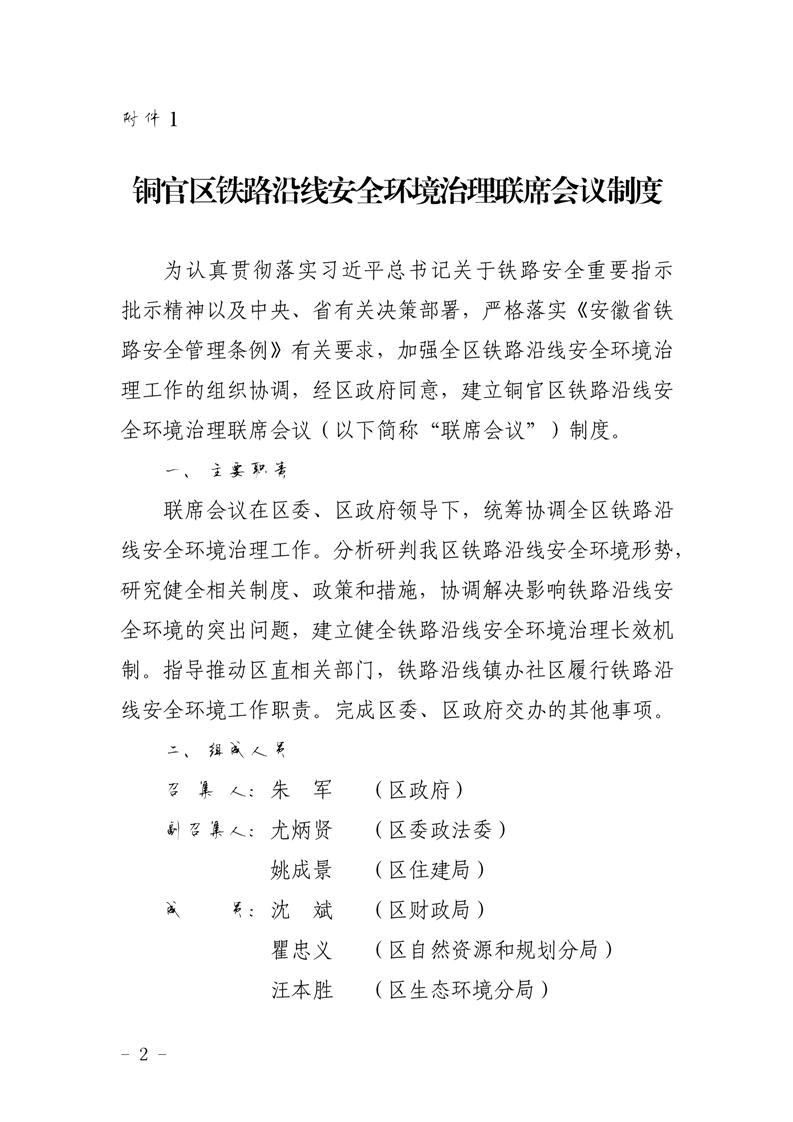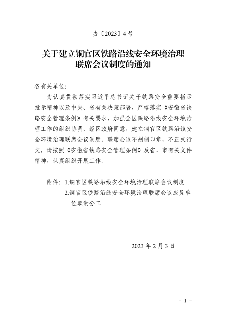 关于建立铜官区铁路沿线安全环境治理联席会议制度的通知-铜官区人民政府