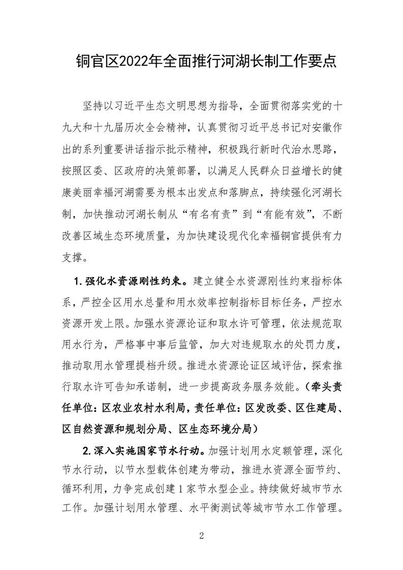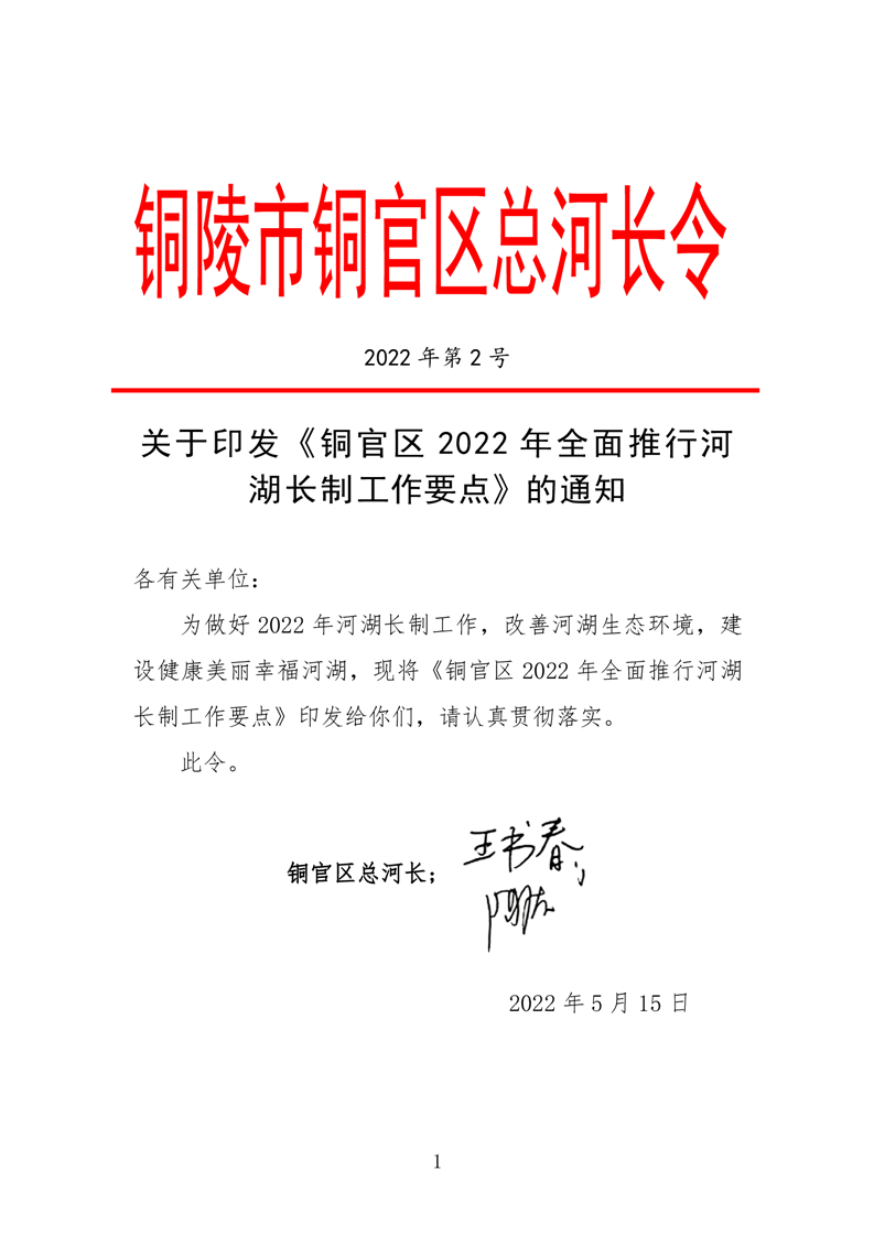 关于印发《铜官区 2022 年全面推行河湖长制工作要点》的通知-铜官区人民政府