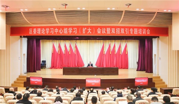 全区县处级以上领导干部,区直各部门主要负责同志,经济部门班子副职,镇办、直管社区党政正职、分管经济工作的班子副职,六大产业链8个驻外招商专班全体成员,科技服务团等参加集中培训会。