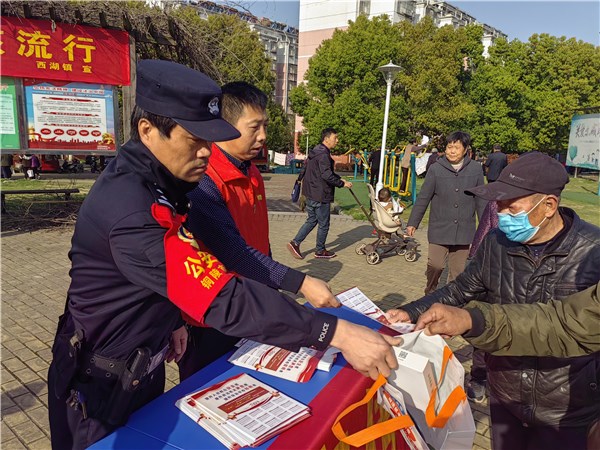 3月28日上午,西湖镇平安办在立新社区法制广场开展平安建设宣传活动,工作人员通过向群众发放安全感满意度、防电信诈骗、禁毒等宣传单和物品,积极呼吁群众下载“国家反诈中心”APP,最大限度减少群众财产损失。此次活动共发放宣传材料200余份,参与人数达300余人,有效推进了平安建设知识的普及,增强了群众的自我防范能力,提升了广大群众对平安建设工作的知晓率和参与感。(西湖镇 王冉)