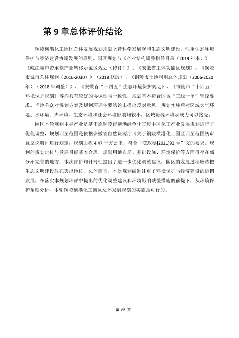 铜陵横港化工园区环境影响区域评估报告-铜官区人民政府