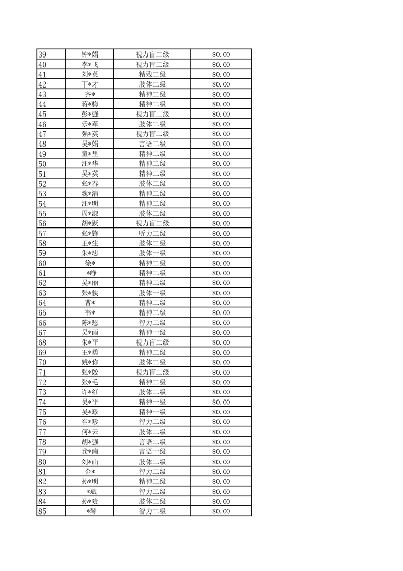 西湖镇2023年5月重度残疾人护理补贴审核发放表