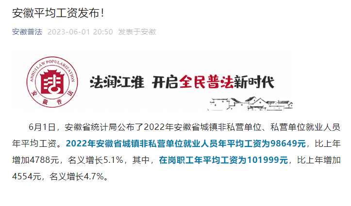 安徽省平均工资标准