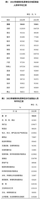 6月1日,安徽省统计局公布了2022年安徽省城镇非私营单位、私营单位就业人员年平均工资。2022年安徽省城镇非私营单位就业人员年平均工资为98649元,比上年增加4788元,名义增长5.1%,其中,在岗职工年平均工资为101999元,比上年增加4554元,名义增长4.7%。