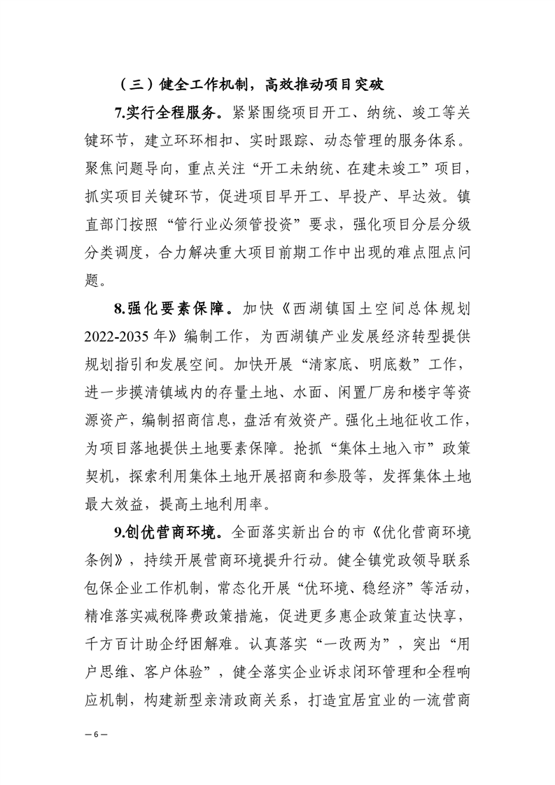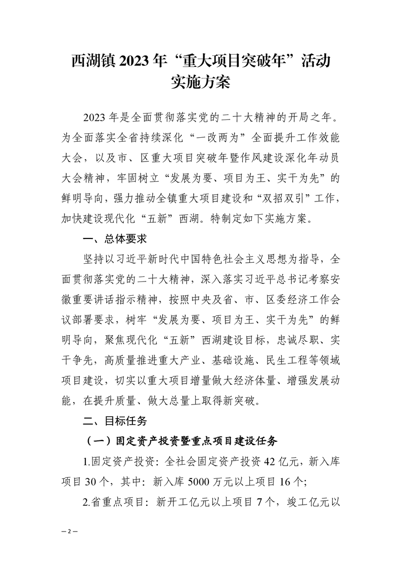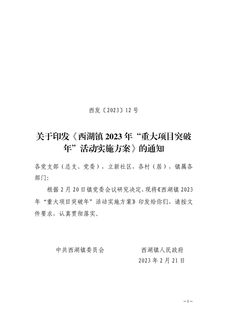 关于印发《西湖镇2023年“重大项目突破年”活动实施方案》的通知
