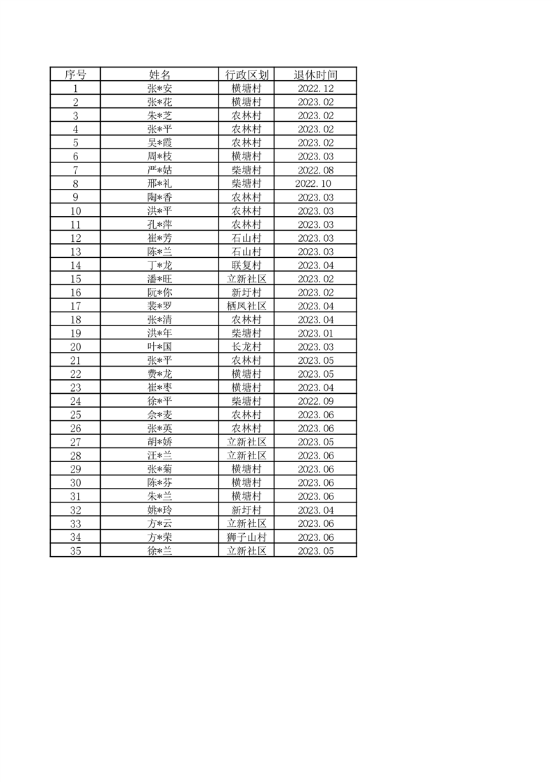 西湖镇2023年1-6月城乡居民养老保险待领取人员信息-铜官区人民政府