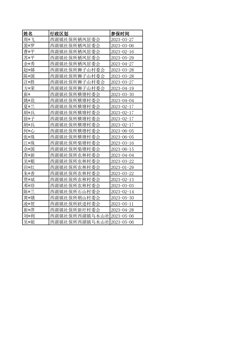 西湖镇2023年1-6月城乡居民养老保险参保登记人员明细-铜官区人民政府