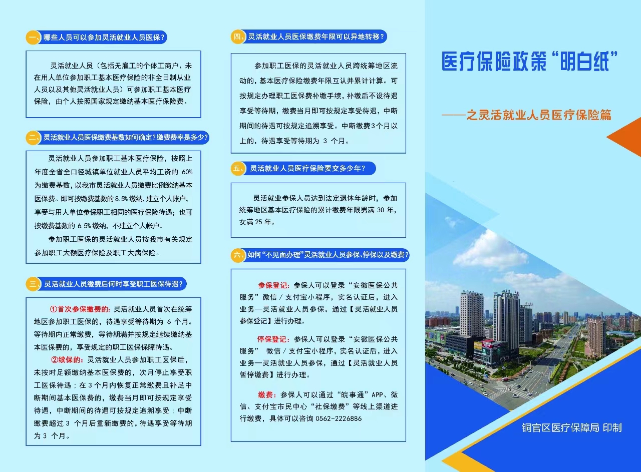 医疗保险政策“明白纸”——之灵活就业人员医疗保障篇-铜官区人民政府