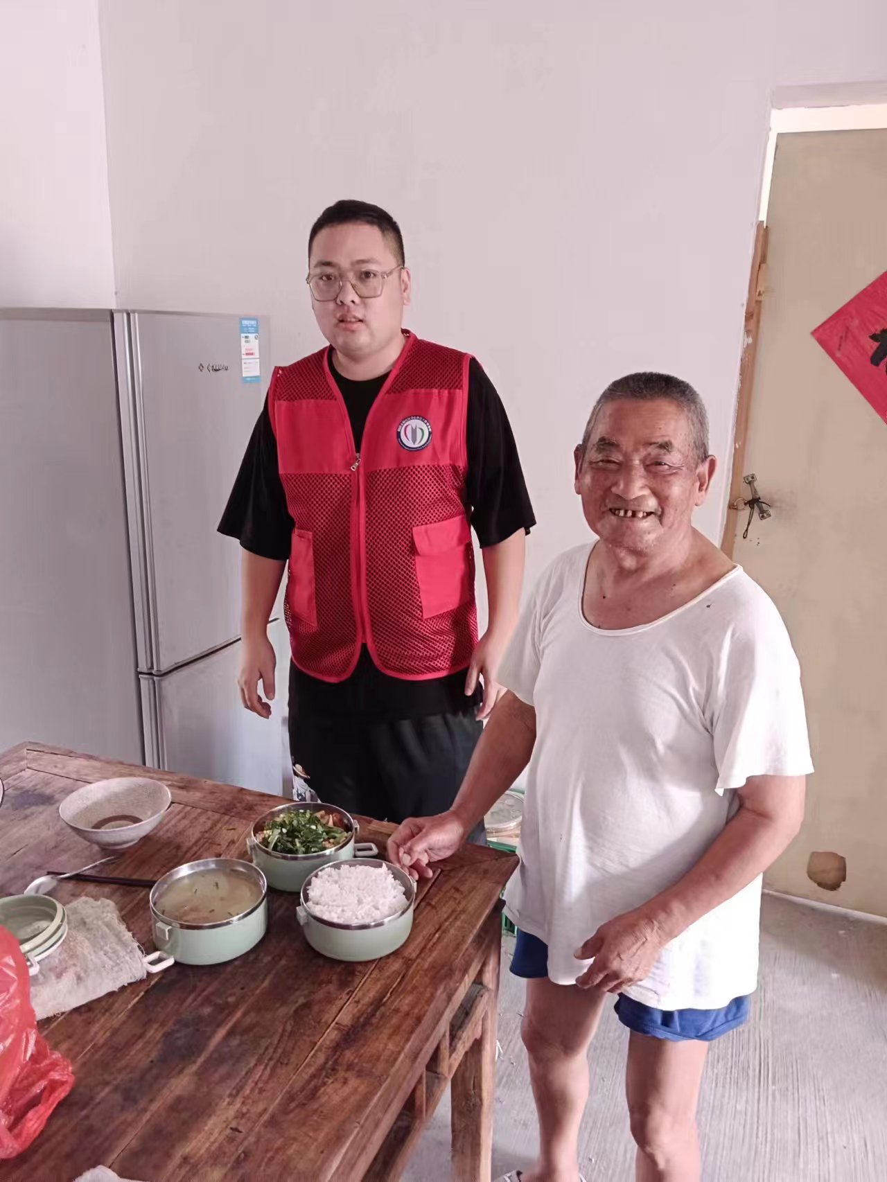 为扎实推进暖民心工程,推广多样化老年助餐模式,7月28日中午,西湖镇开展送餐上门的老年助餐服务行动,乌木山老年助餐点志愿者来到立新佳园特困供养对象崔前范家中,送上健康可口的“热乎饭”。