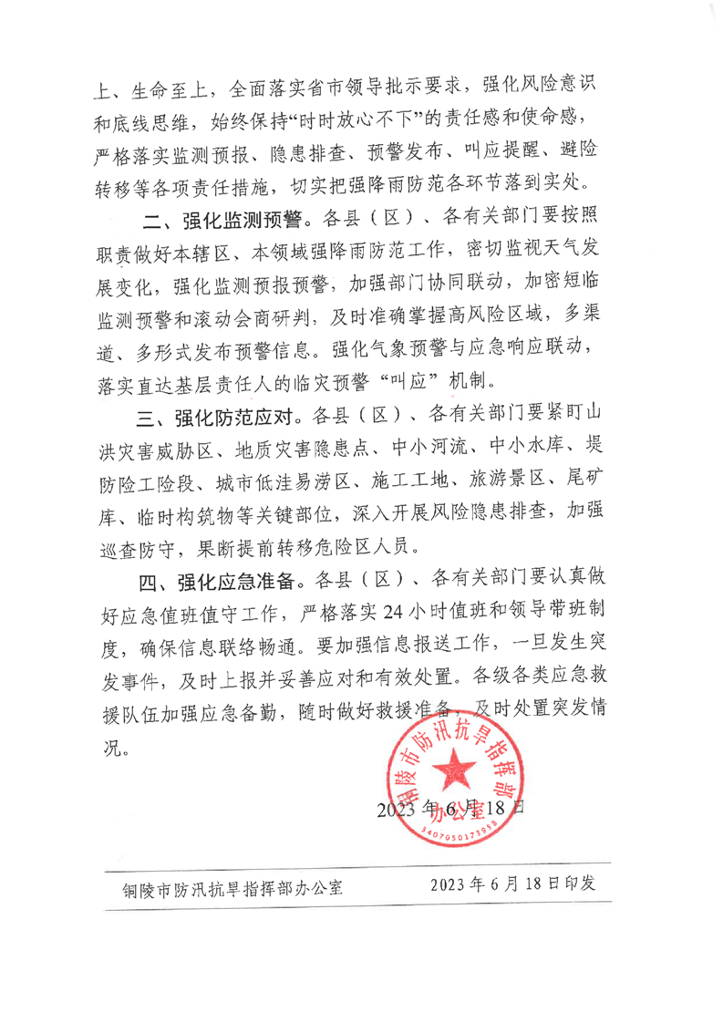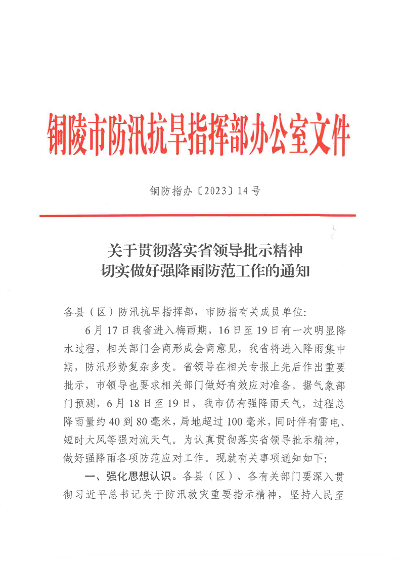 转发《关于贯彻落实省领导批示精神切实做好强降雨防范工作的通知》-铜官区人民政府